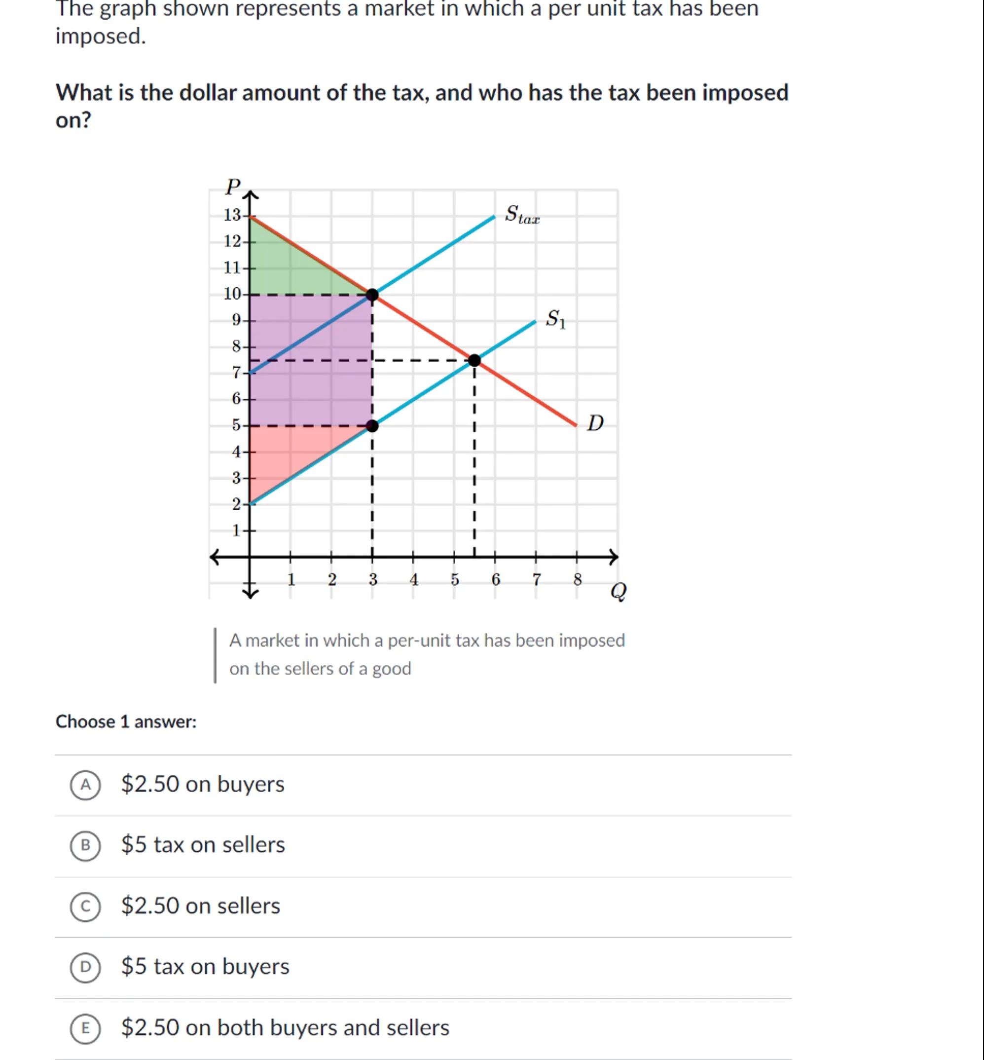 A market in which a per-unit tax has been imposed on the sellers of a good