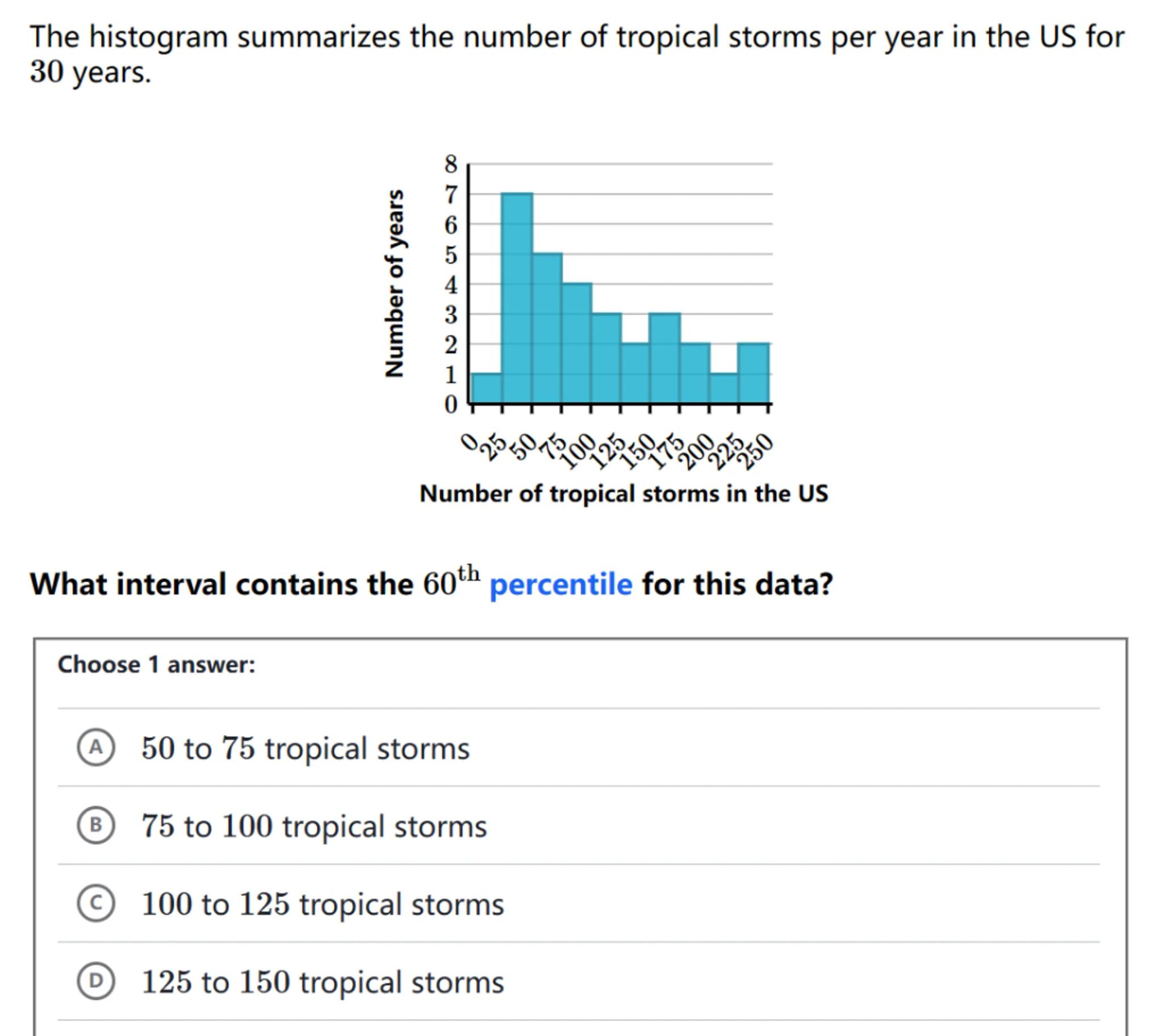 (B) 75 to 100 tropical storms