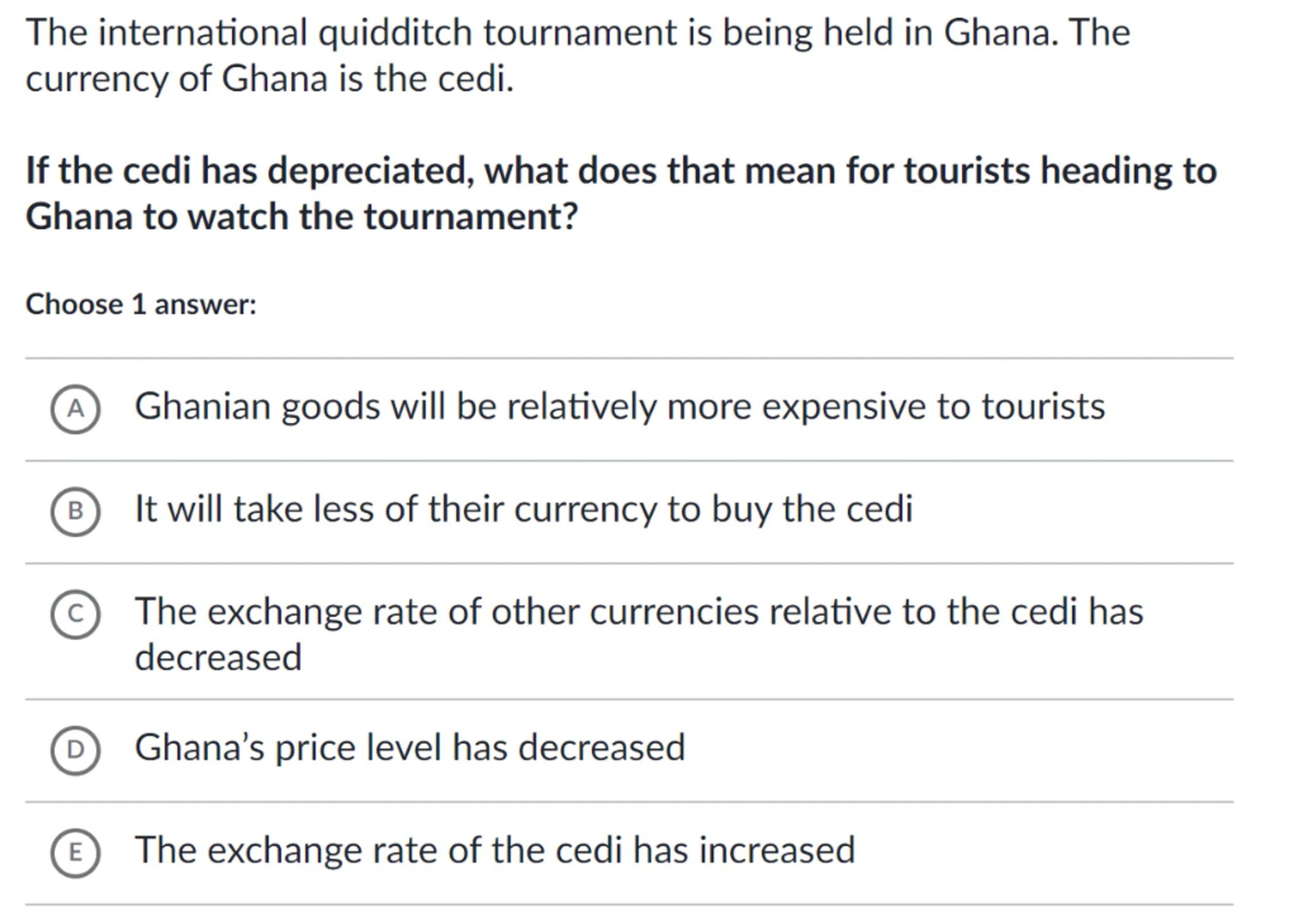 The international quidditch tournament is being held in Ghana. The currency of Ghana is the cedi.