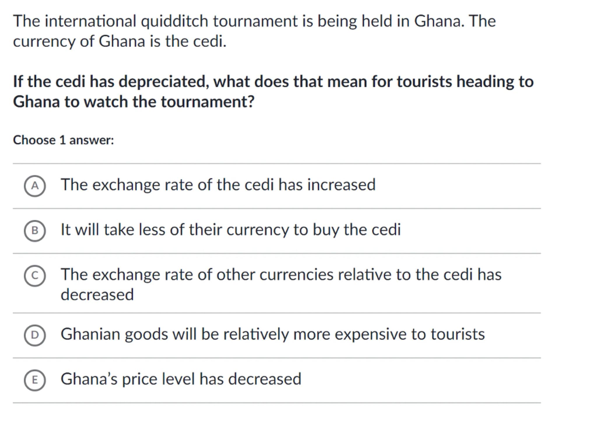 (D) Ghanian goods will be relatively more expensive to tourists