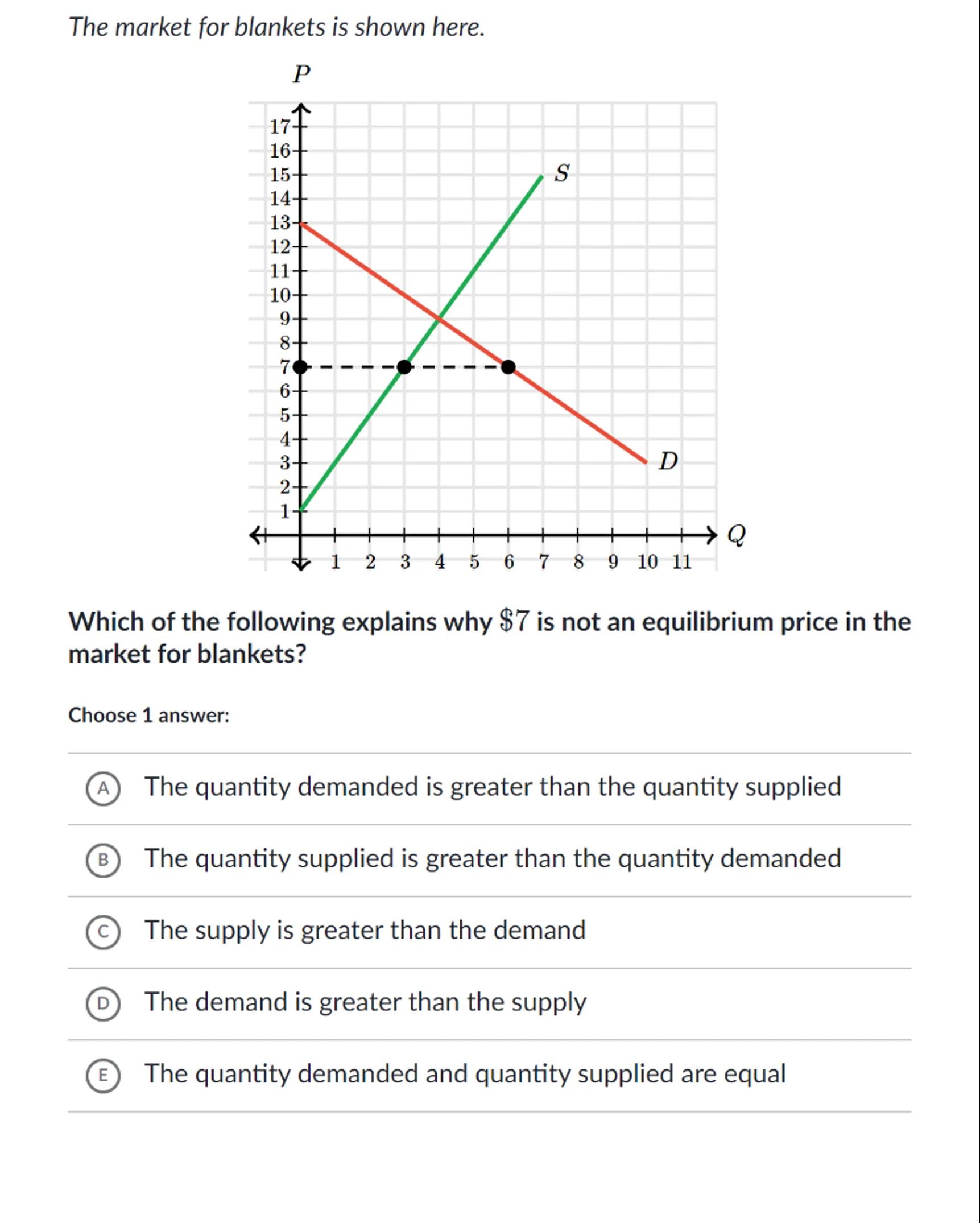 Which of the following explains why is not an equilibrium price in the market for blankets?