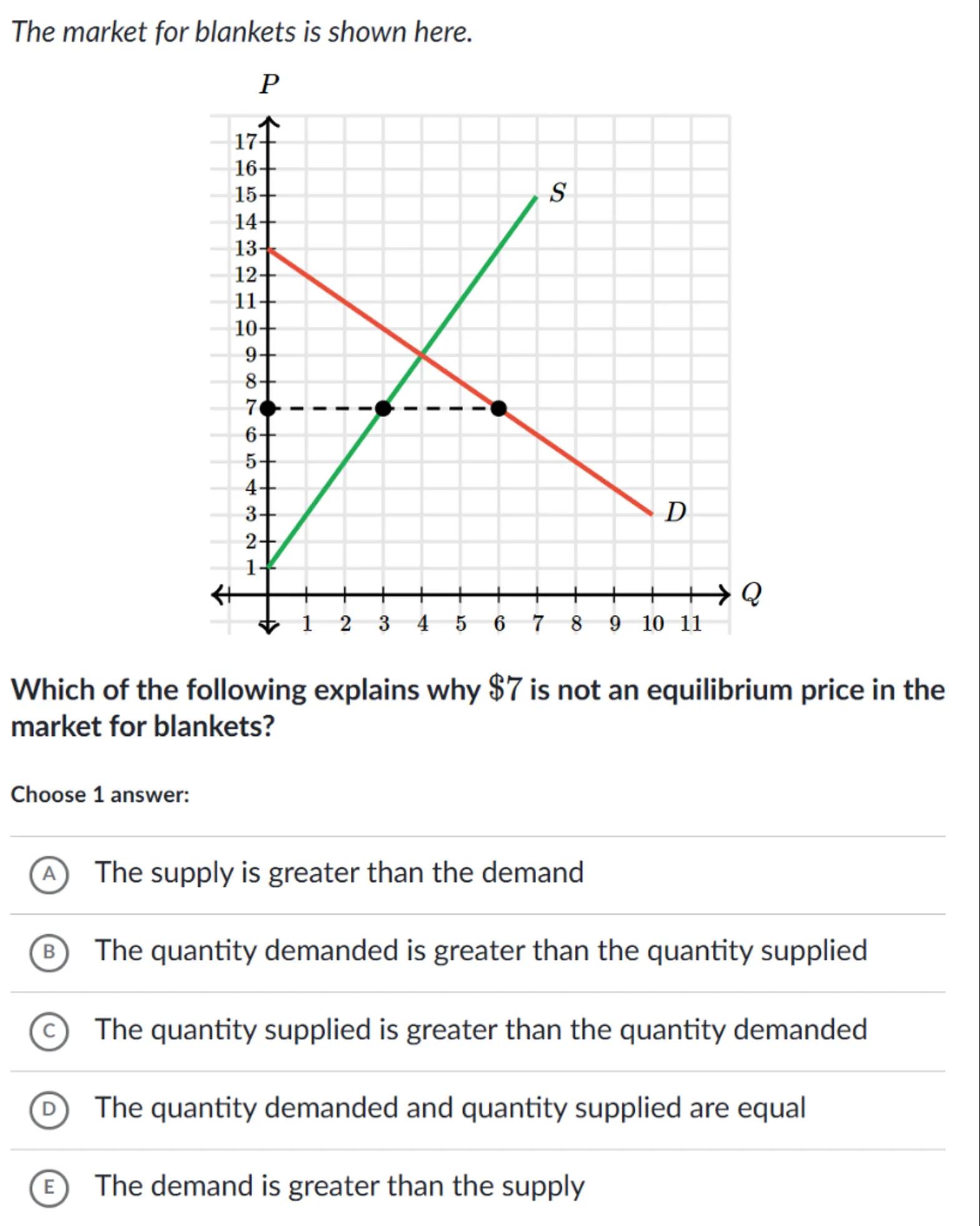 Which of the following explains why is not an equilibrium price in the market for blankets?