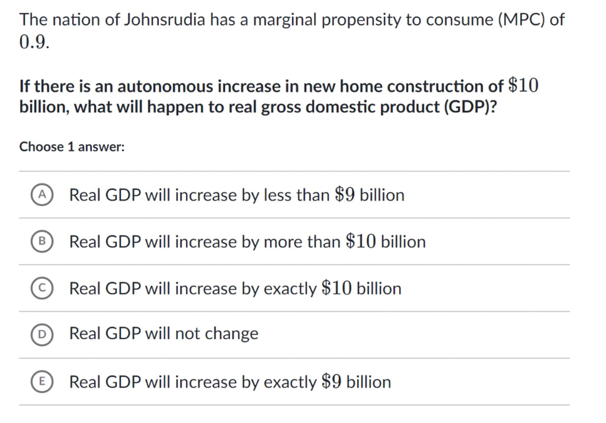 (E) Real GDP will increase by exactly billion