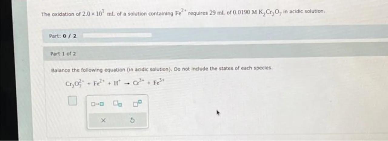 Balance the following equation (in acidic solution). Do not include the states of each species.