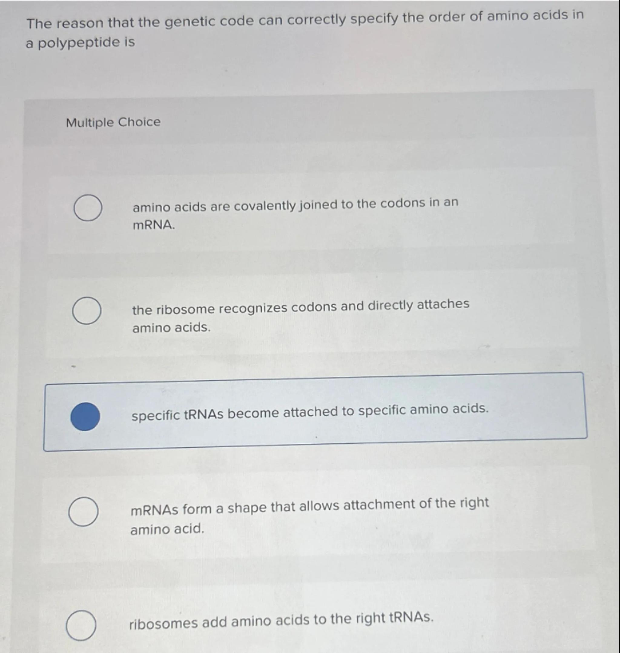 The reason that the genetic code can correctly specify the order of amino acids in a polypeptide is