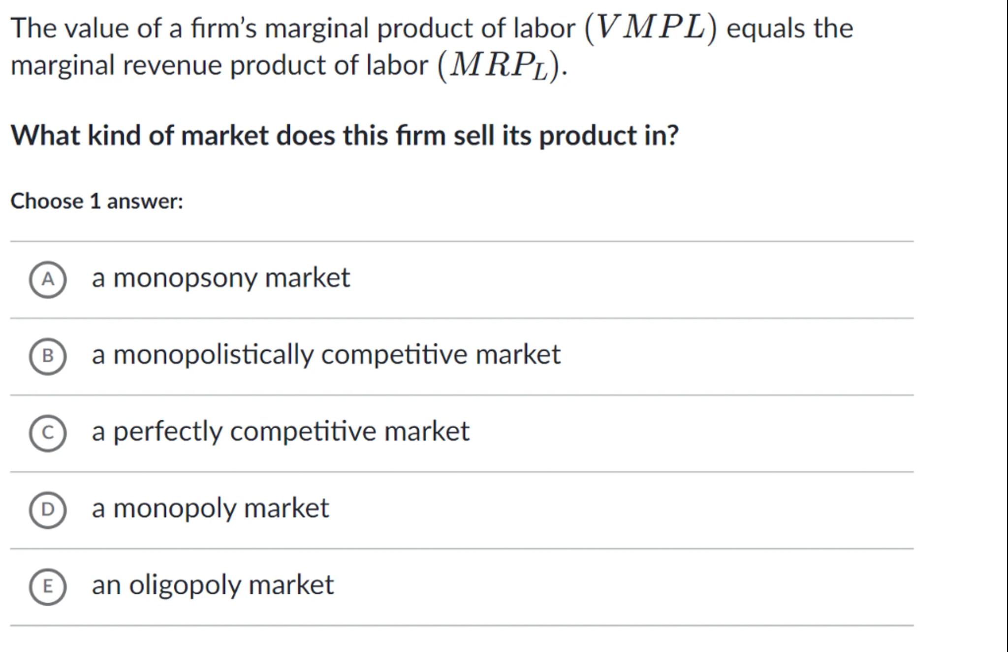 (A) a monopsony market