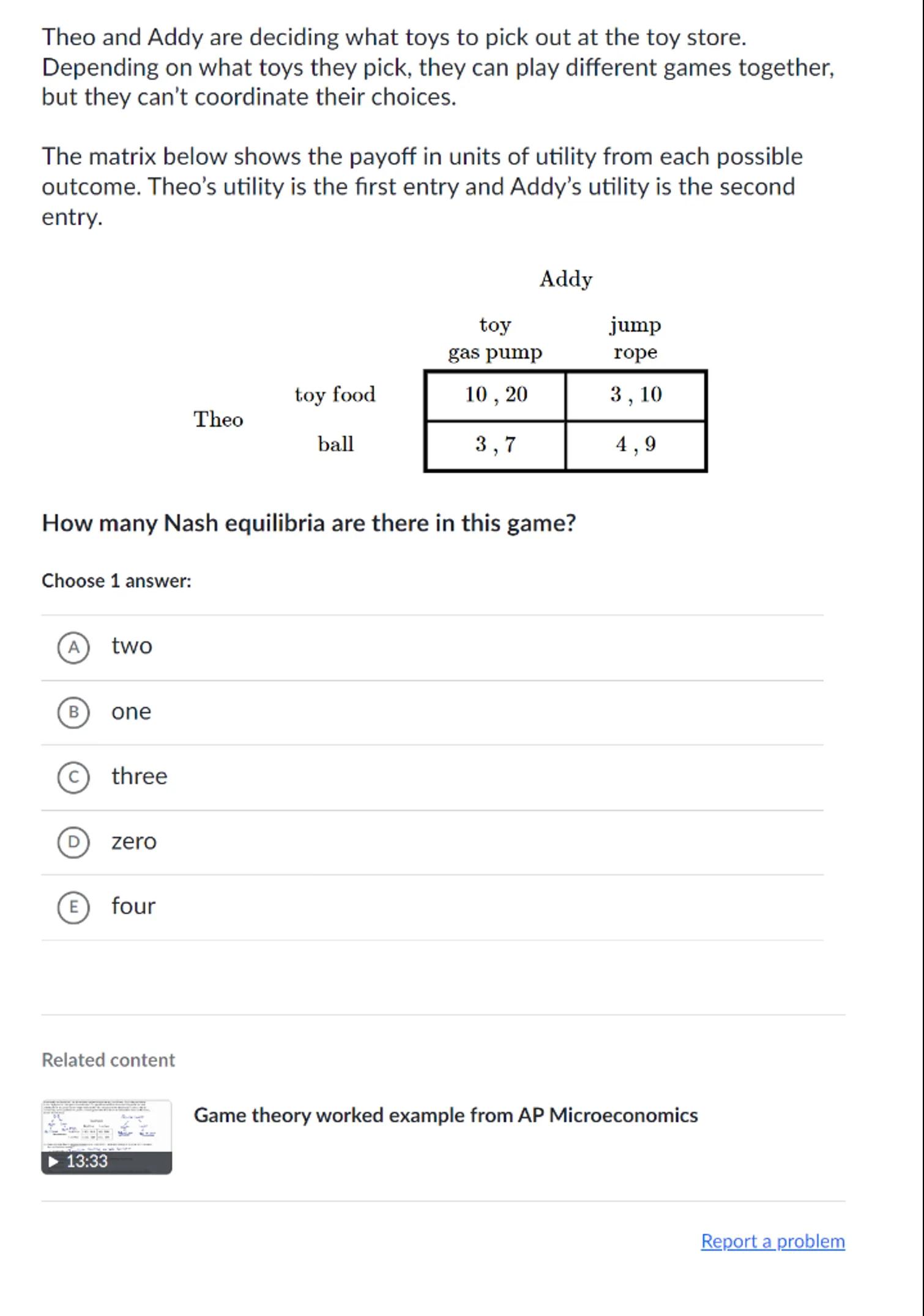 Game theory worked example from AP Microeconomics