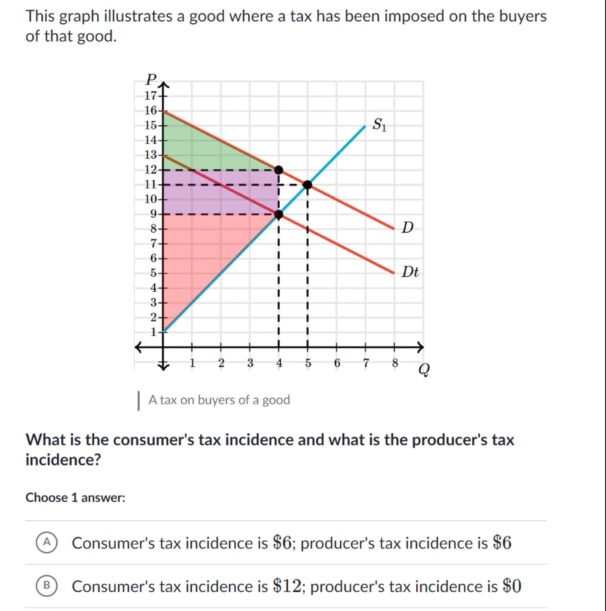 (A) Consumer's tax incidence is ; producer's tax incidence is