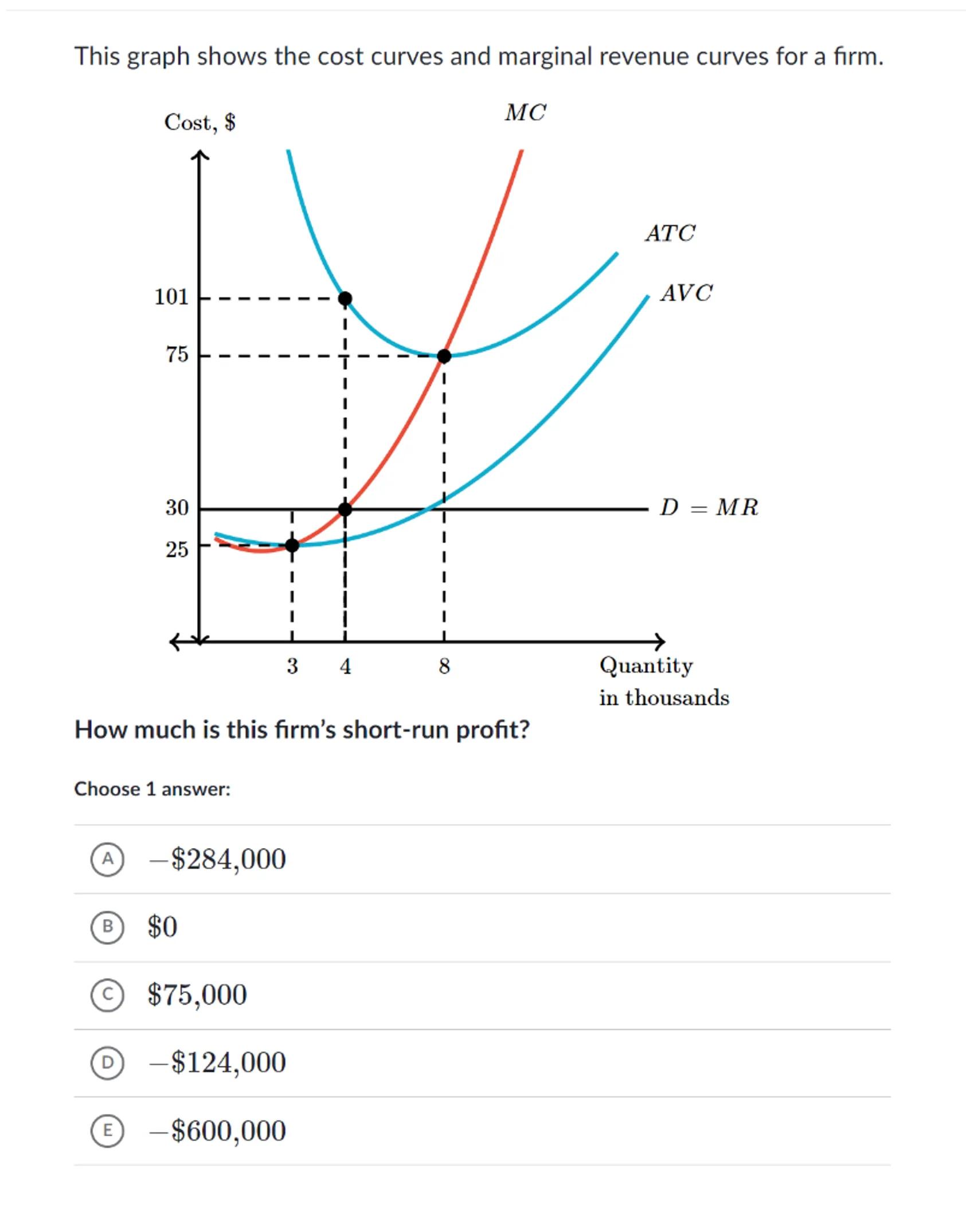 This graph shows the cost curves and marginal revenue curves for a firm.