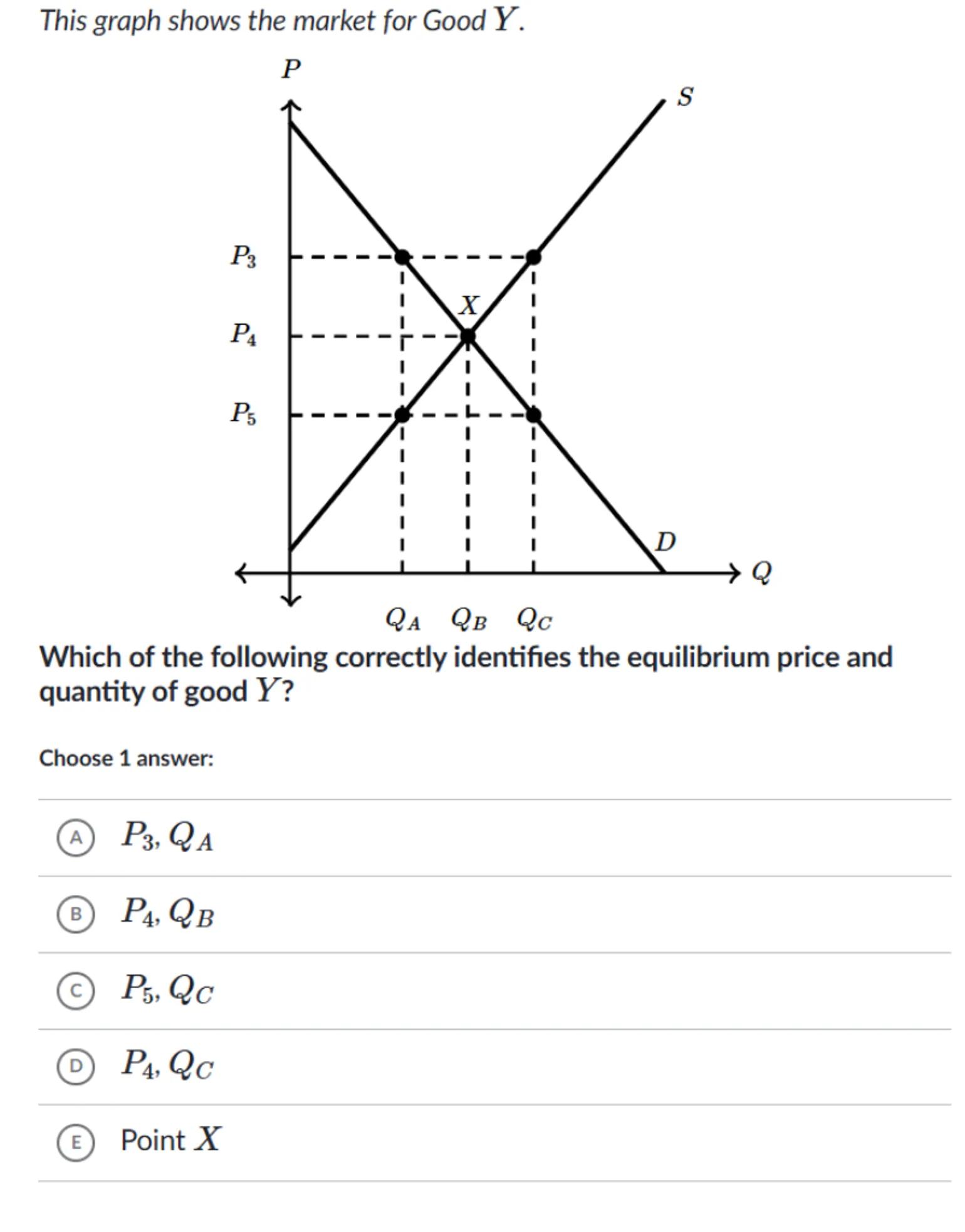 Which of the following correctly identifies the equilibrium price and quantity of good ?