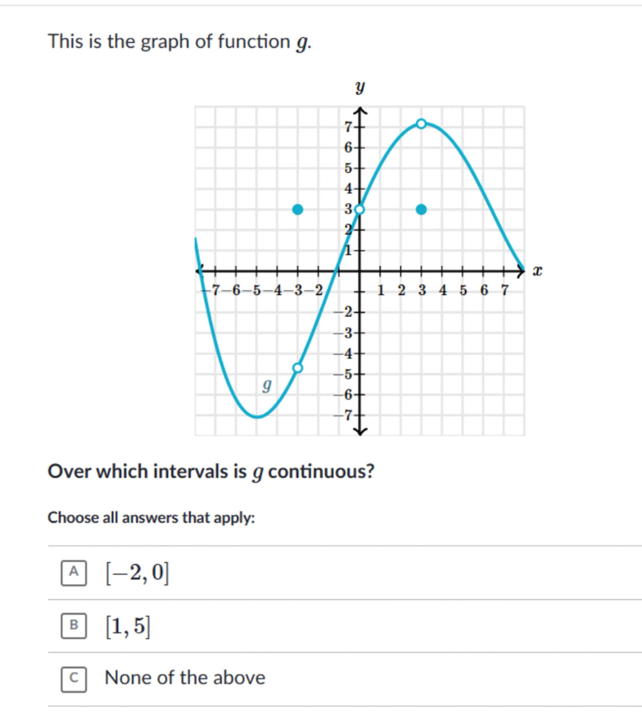 Over which intervals is continuous?