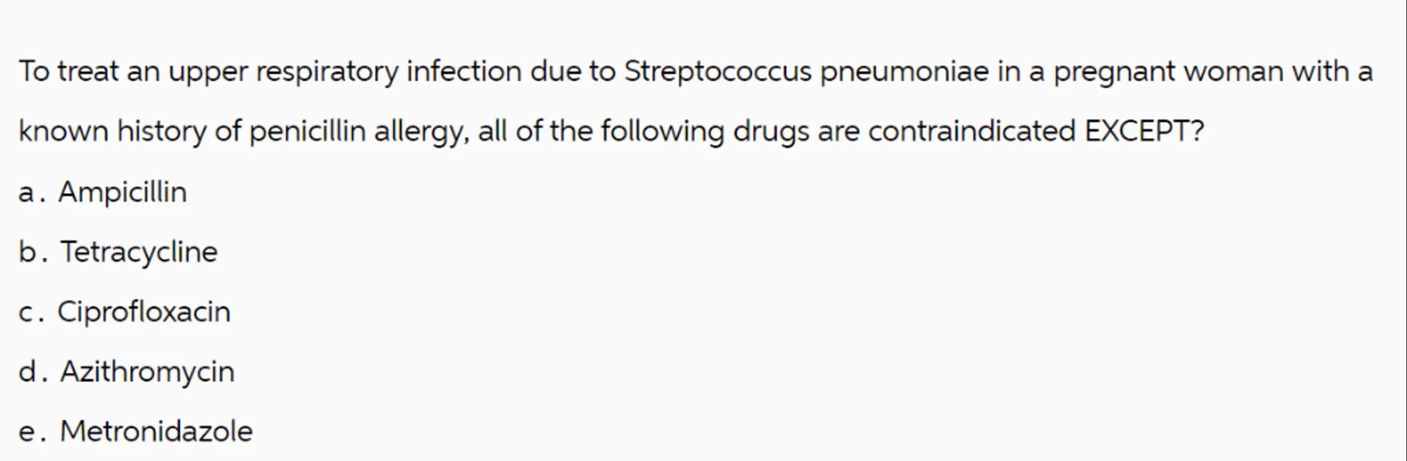 To treat an upper respiratory infection due to Streptococcus pneumoniae in a pregnant woman with a known history of penicillin allergy, all of the following drugs are contraindicated EXCEPT?
