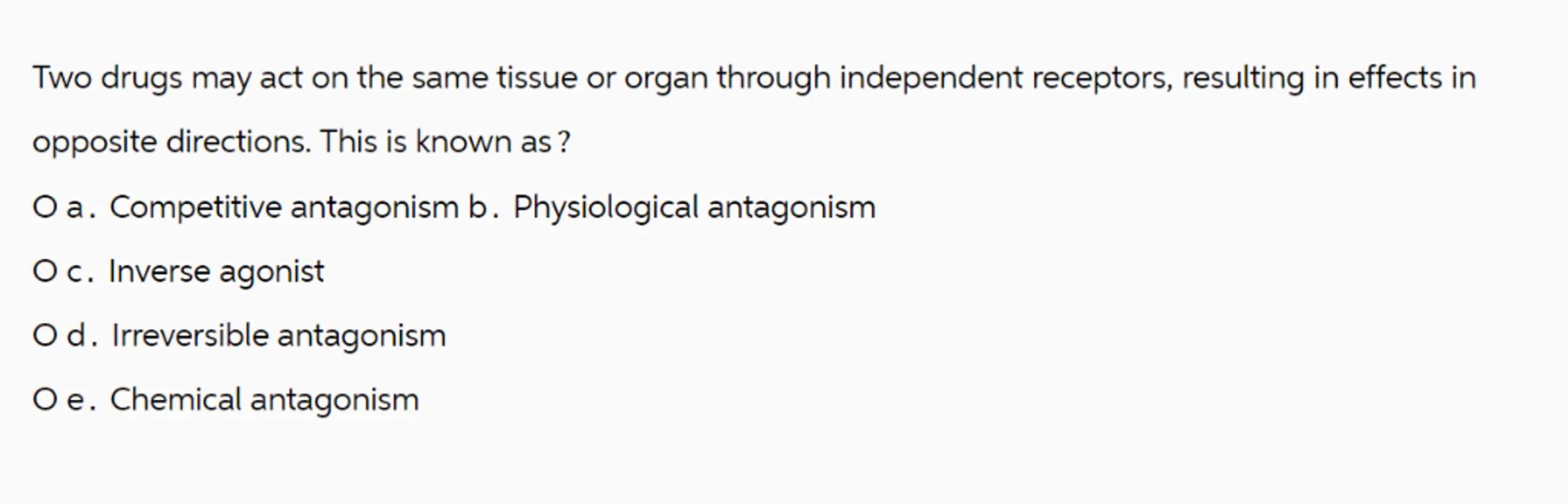 Two drugs may act on the same tissue or organ through independent receptors, resulting in effects in opposite directions. This is known as?