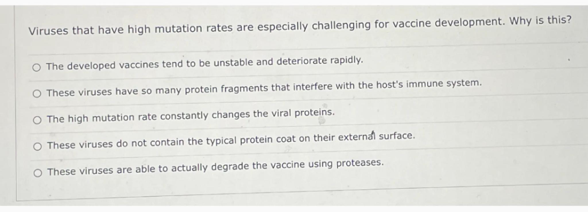 Viruses that have high mutation rates are especially challenging for vaccine development. Why is this?