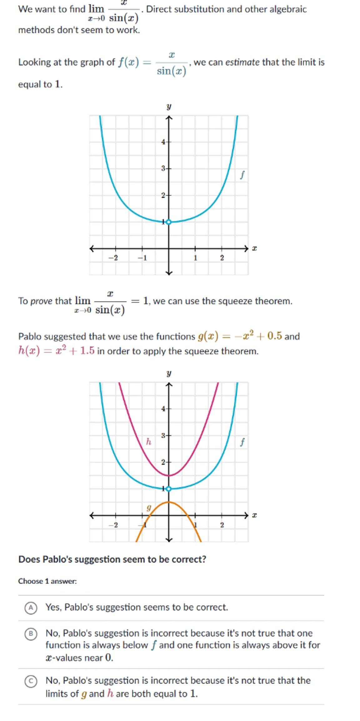 Pablo suggested that we use the functions and in order to apply the squeeze theorem.