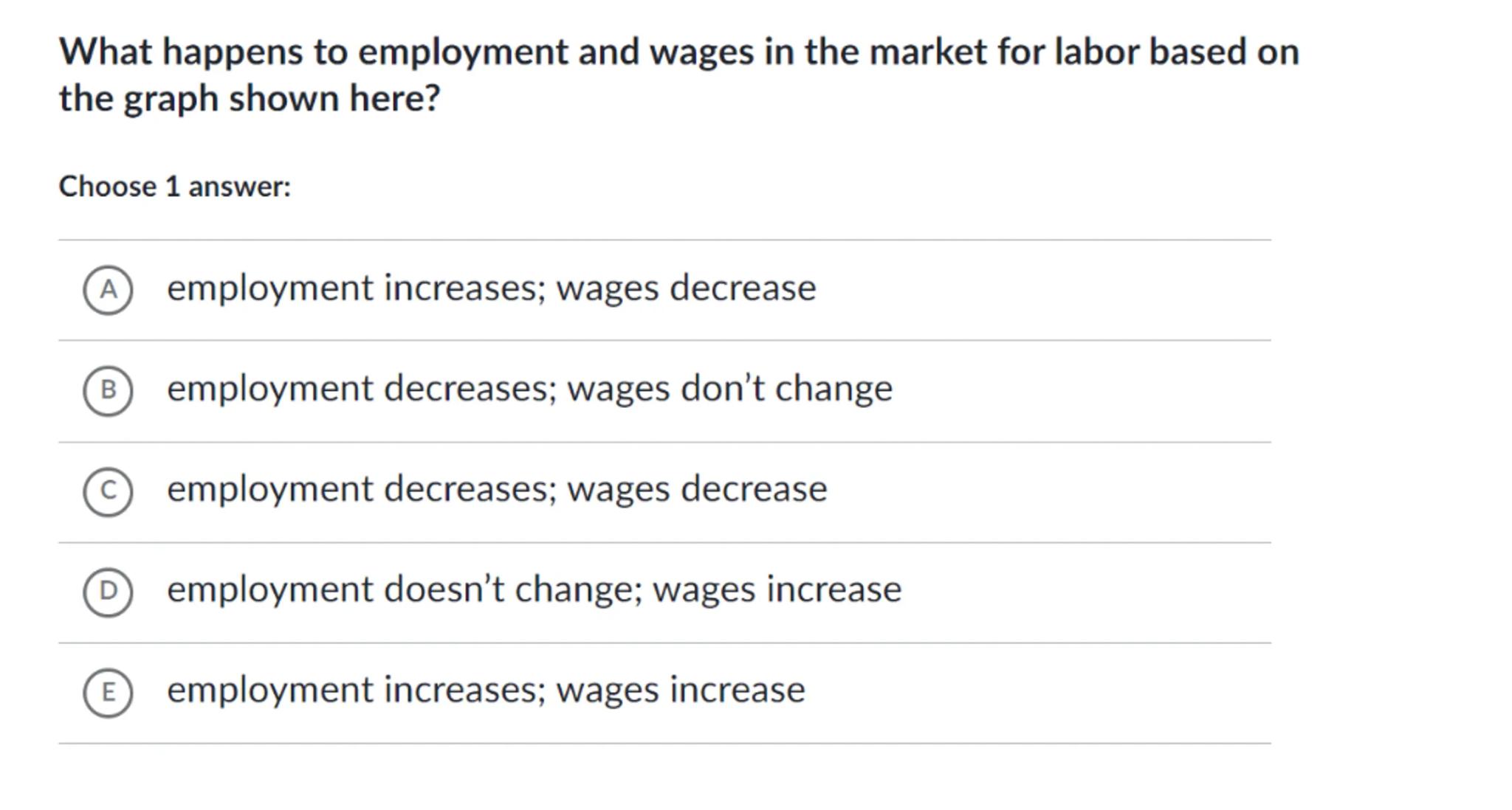 What happens to employment and wages in the market for labor based on the graph shown here?