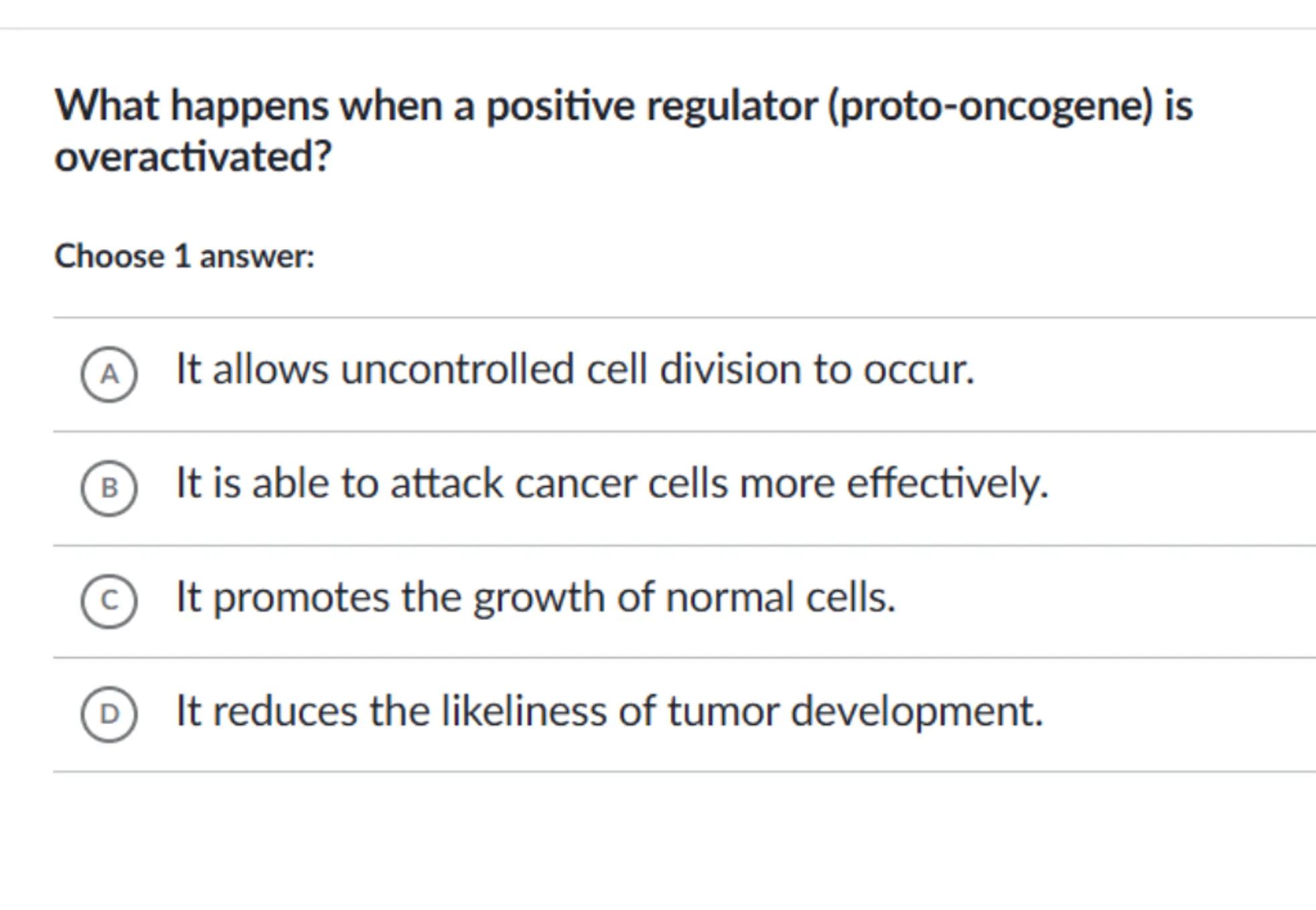 What happens when a positive regulator (proto-oncogene) is overactivated?