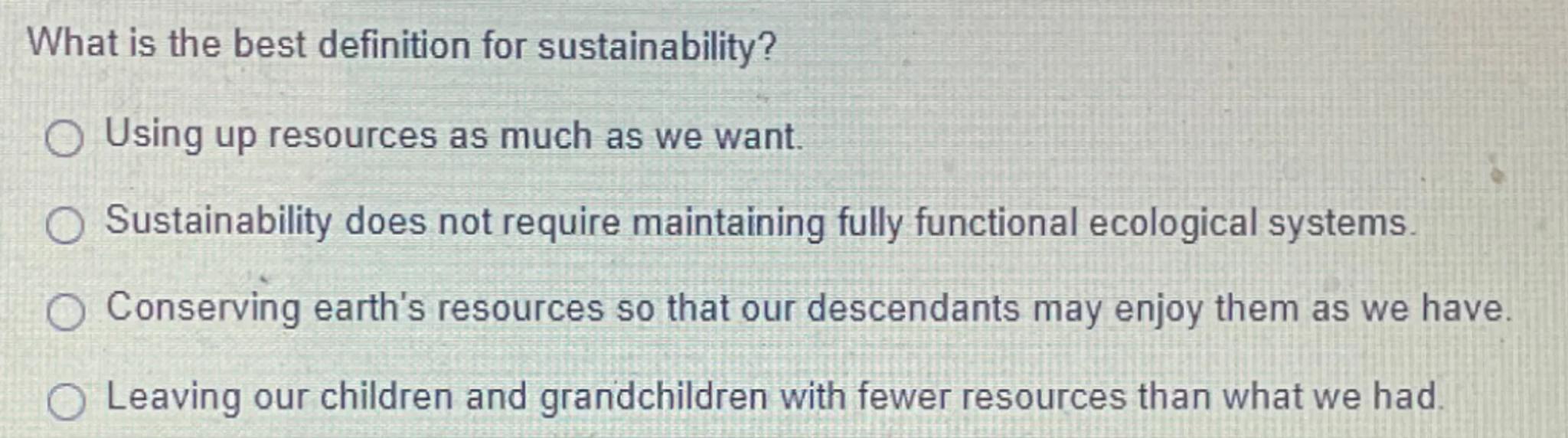 Conserving earth's resources so that our descendants may enjoy them as we have.