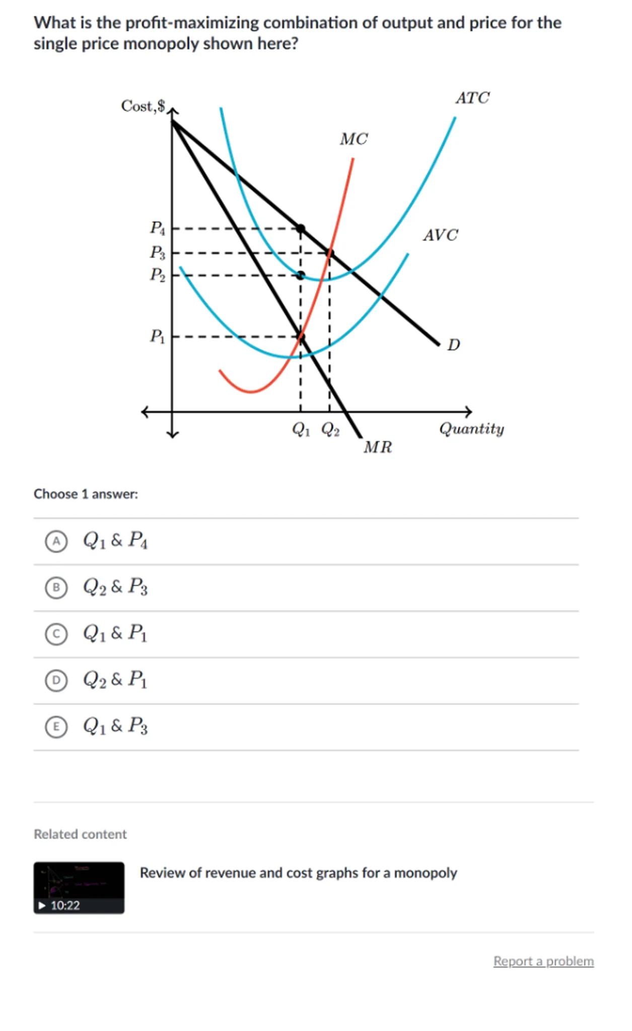 Review of revenue and cost graphs for a monopoly