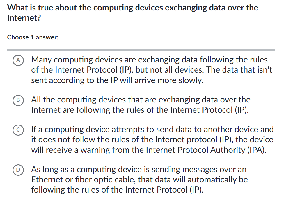 of the Internet Protocol (IP), but not all devices. The data that isn't