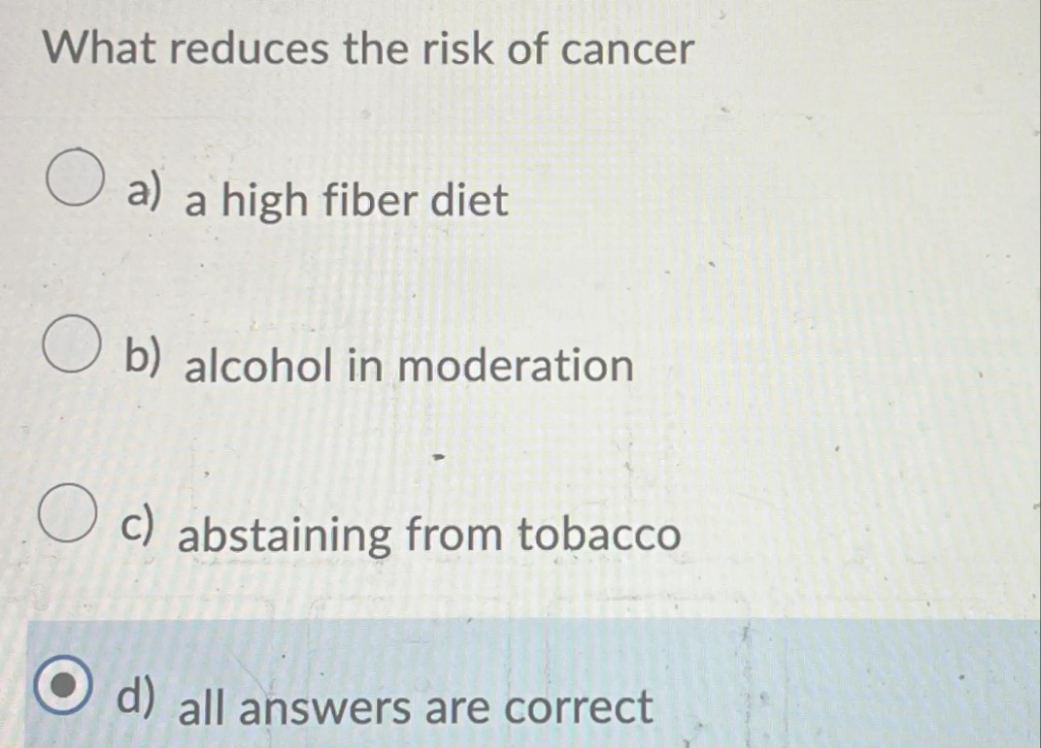What reduces the risk of cancer