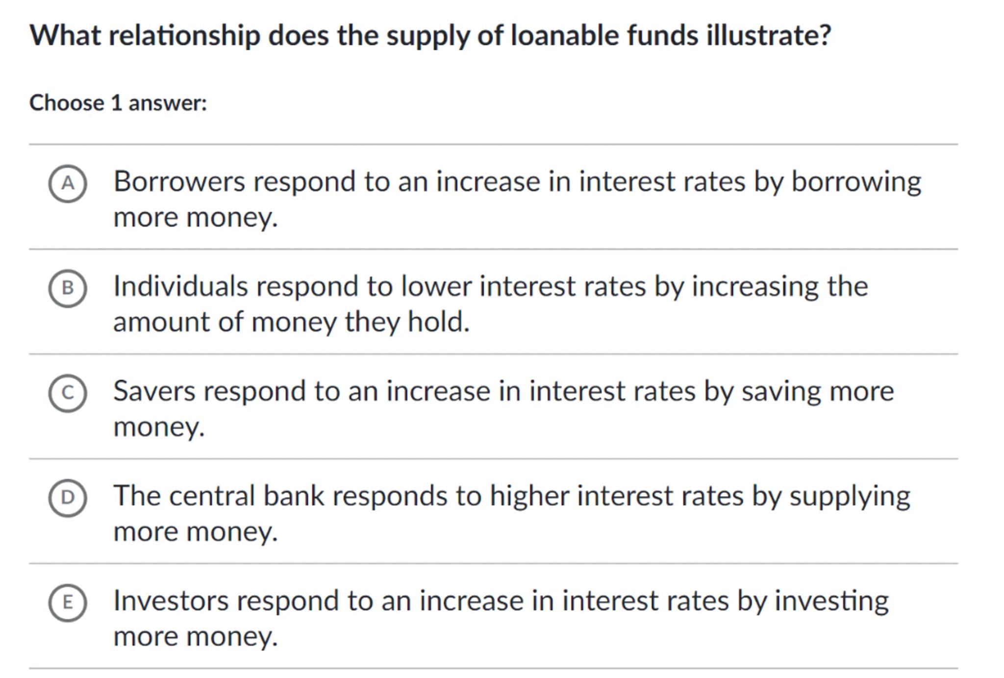 (A) Borrowers respond to an increase in interest rates by borrowing more money.