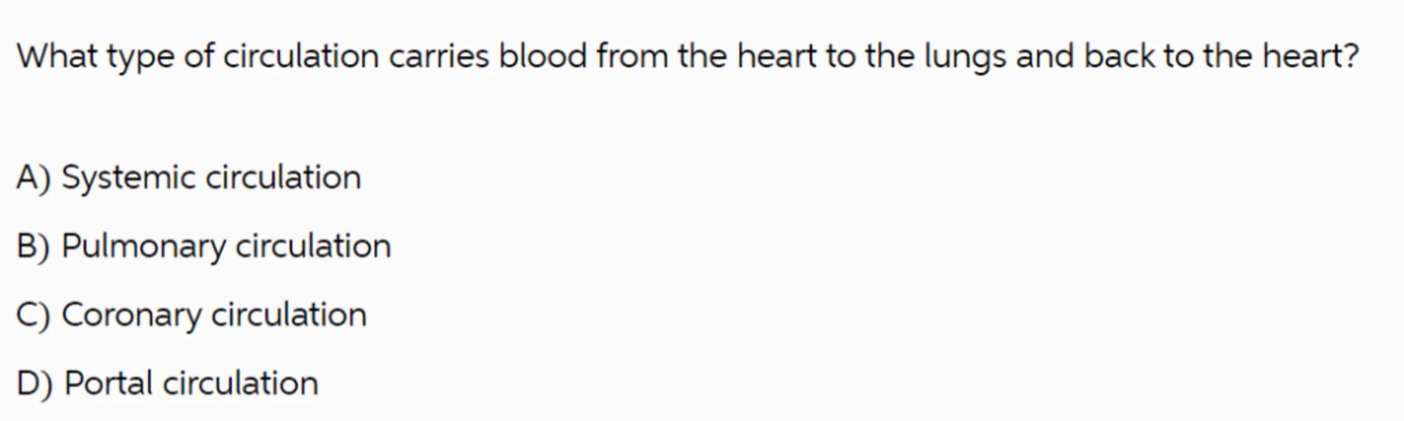 What type of circulation carries blood from the heart to the lungs and back to the heart?