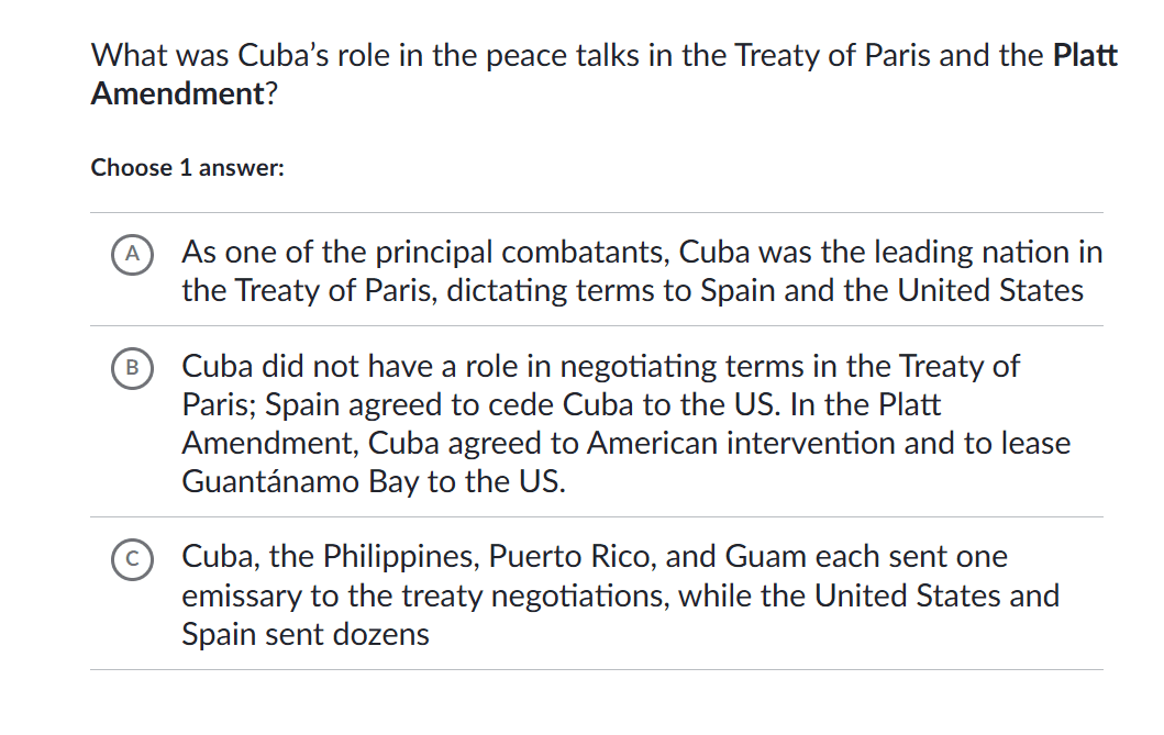 What was Cuba's role in the peace talks in the Treaty of Paris and the Platt