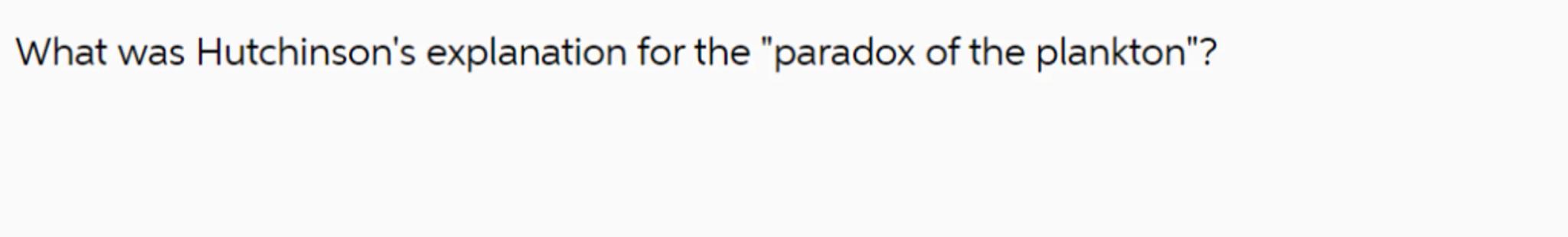 Sure, let's address the question about Hutchinson's explanation for the "paradox of the plankton."