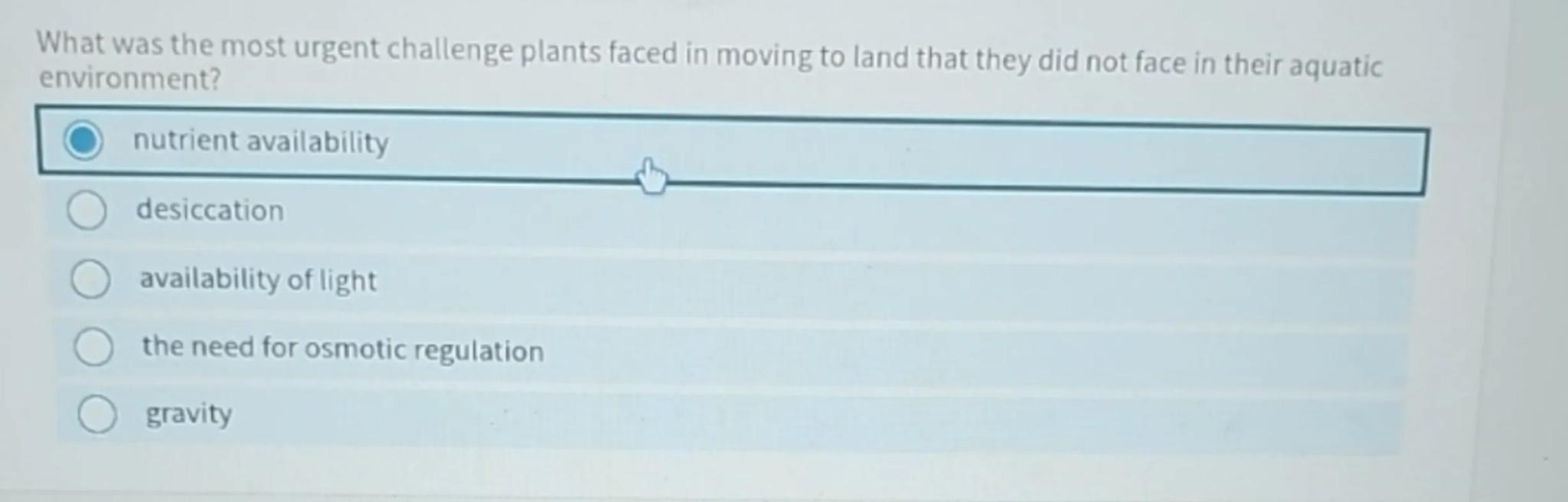 What was the most urgent challenge plants faced in moving to land that they did not face in their aquatic environment?