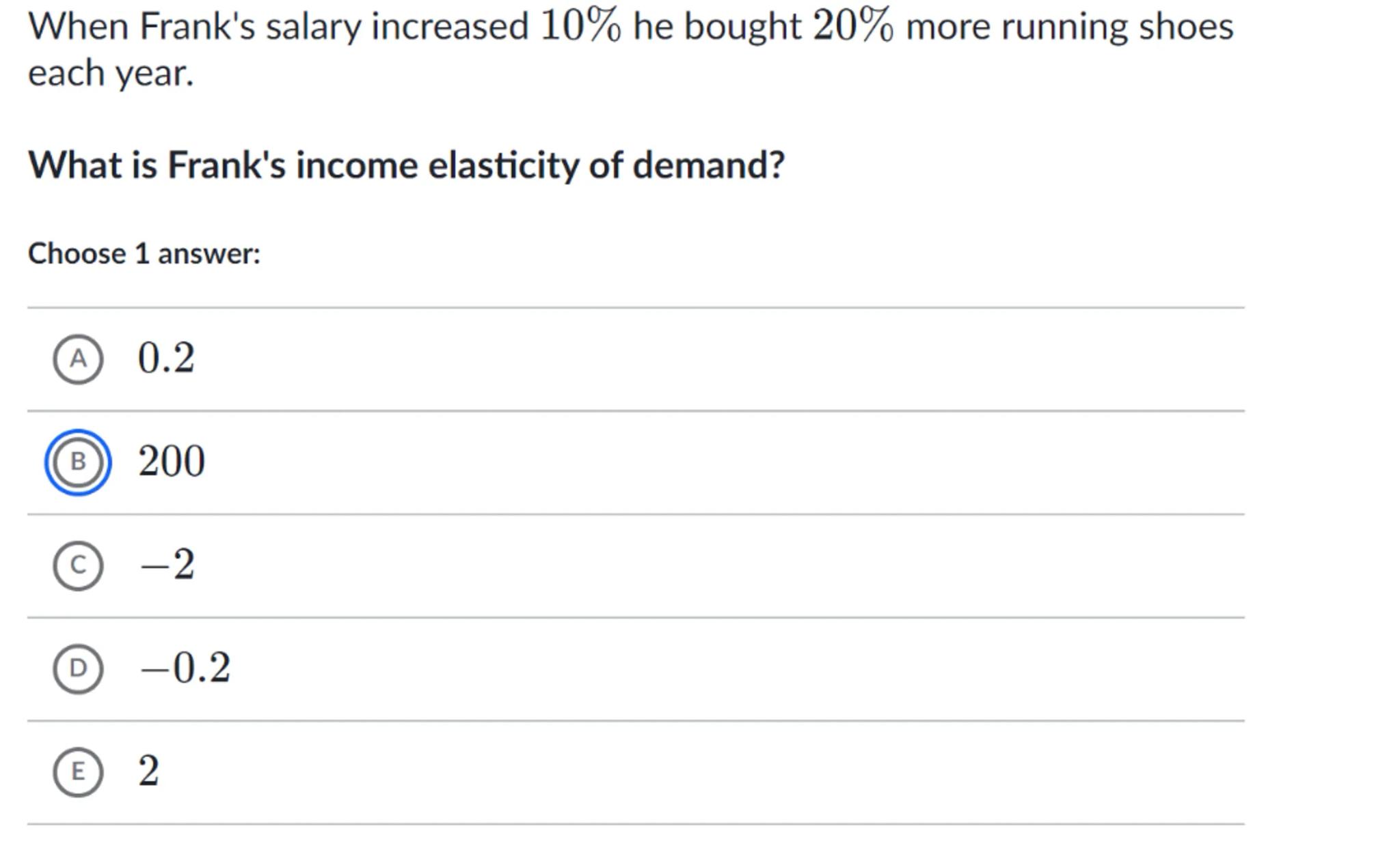 What is Frank's income elasticity of demand?