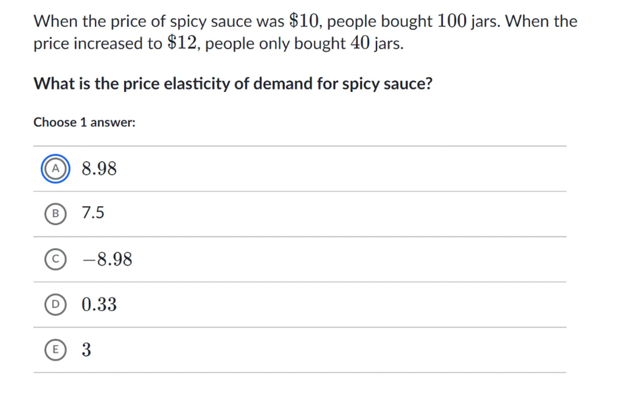 When the price of spicy sauce was , people bought 100 jars. When the price increased to , people only bought 40 jars.
