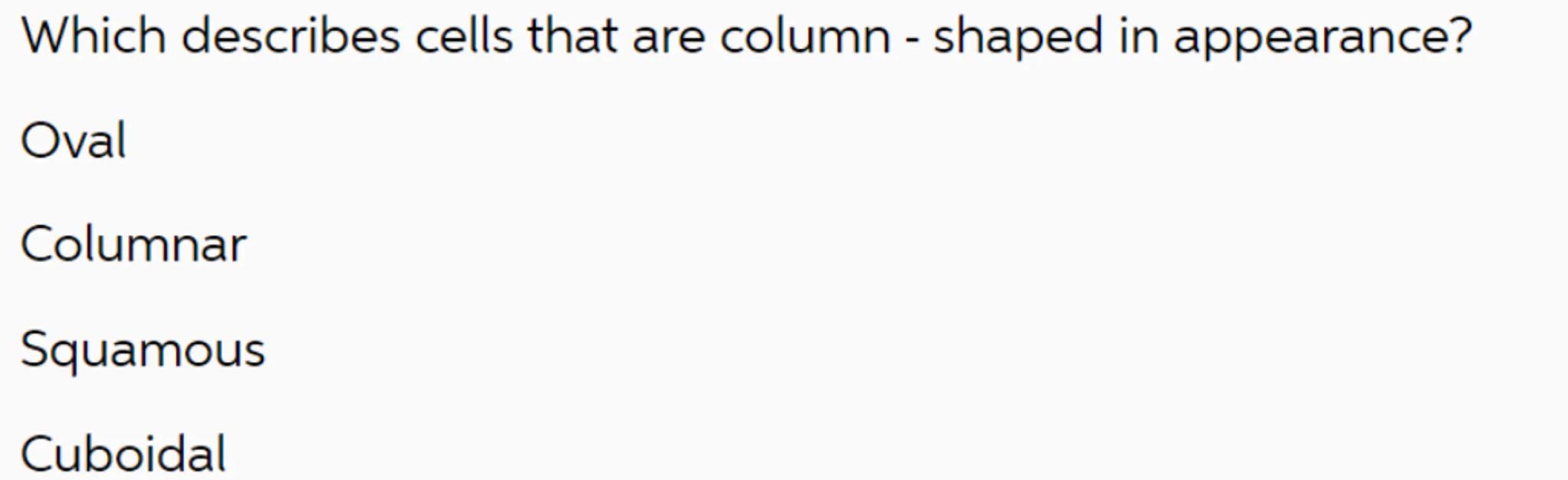Which describes cells that are column - shaped in appearance?