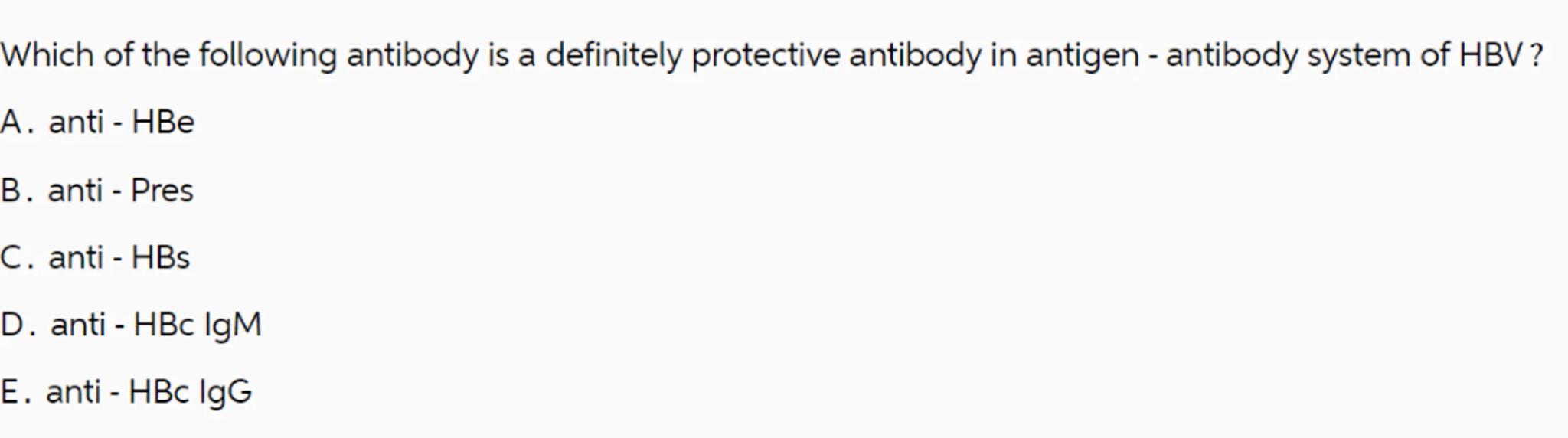 Which of the following antibody is a definitely protective antibody in antigen - antibody system of HBV?