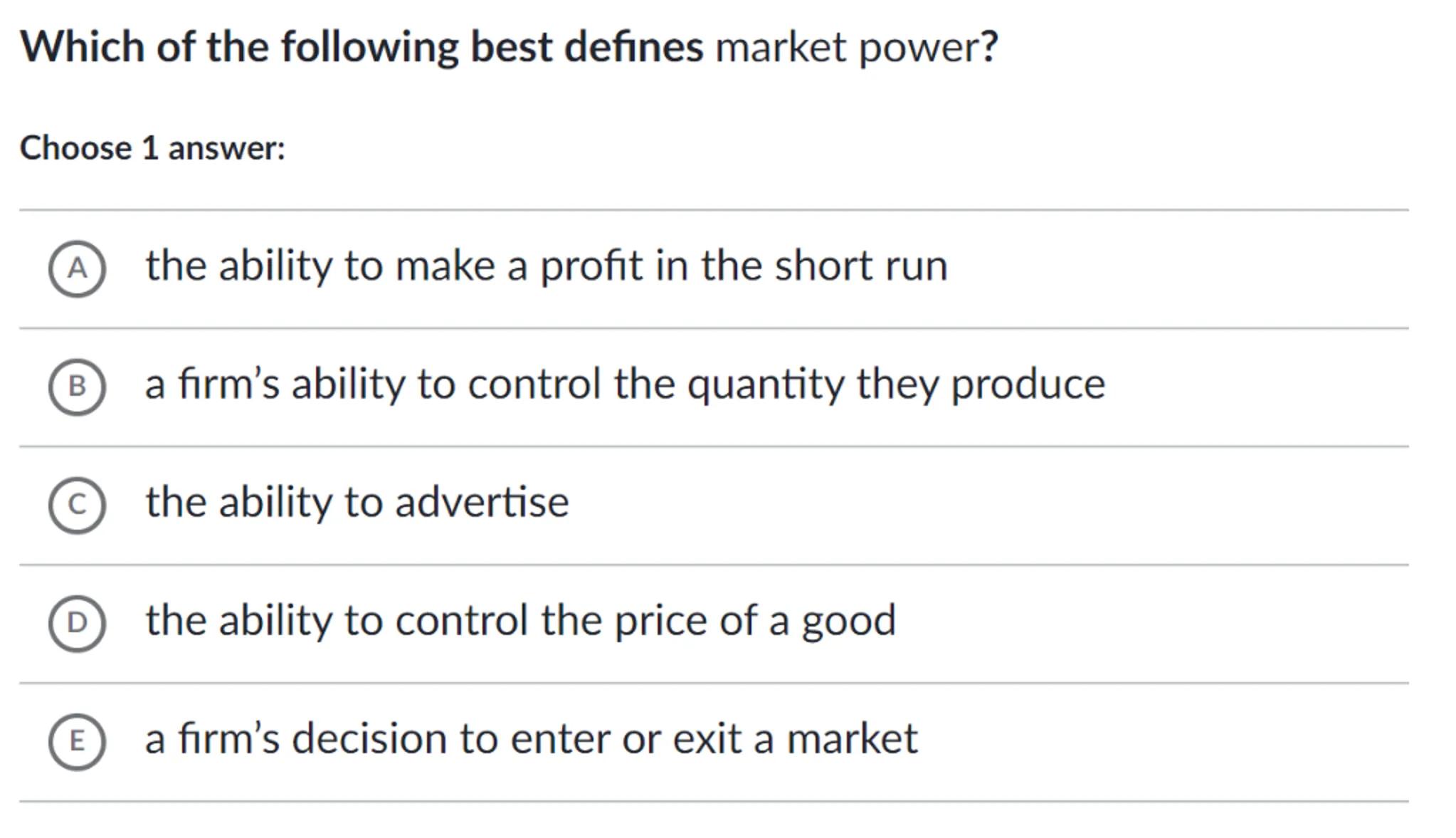 (D) the ability to control the price of a good