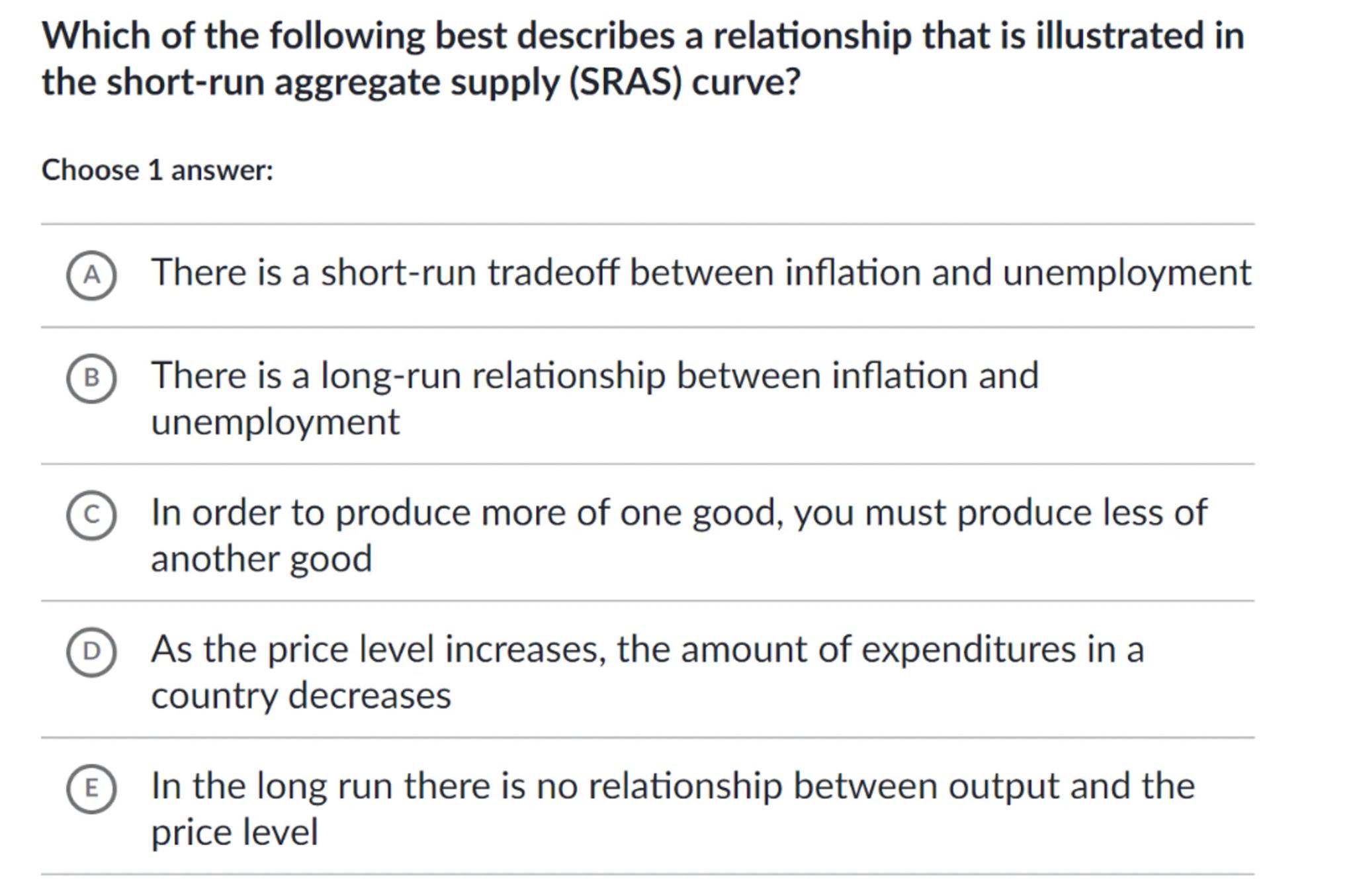 Which of the following best describes a relationship that is illustrated in the short-run aggregate supply (SRAS) curve?