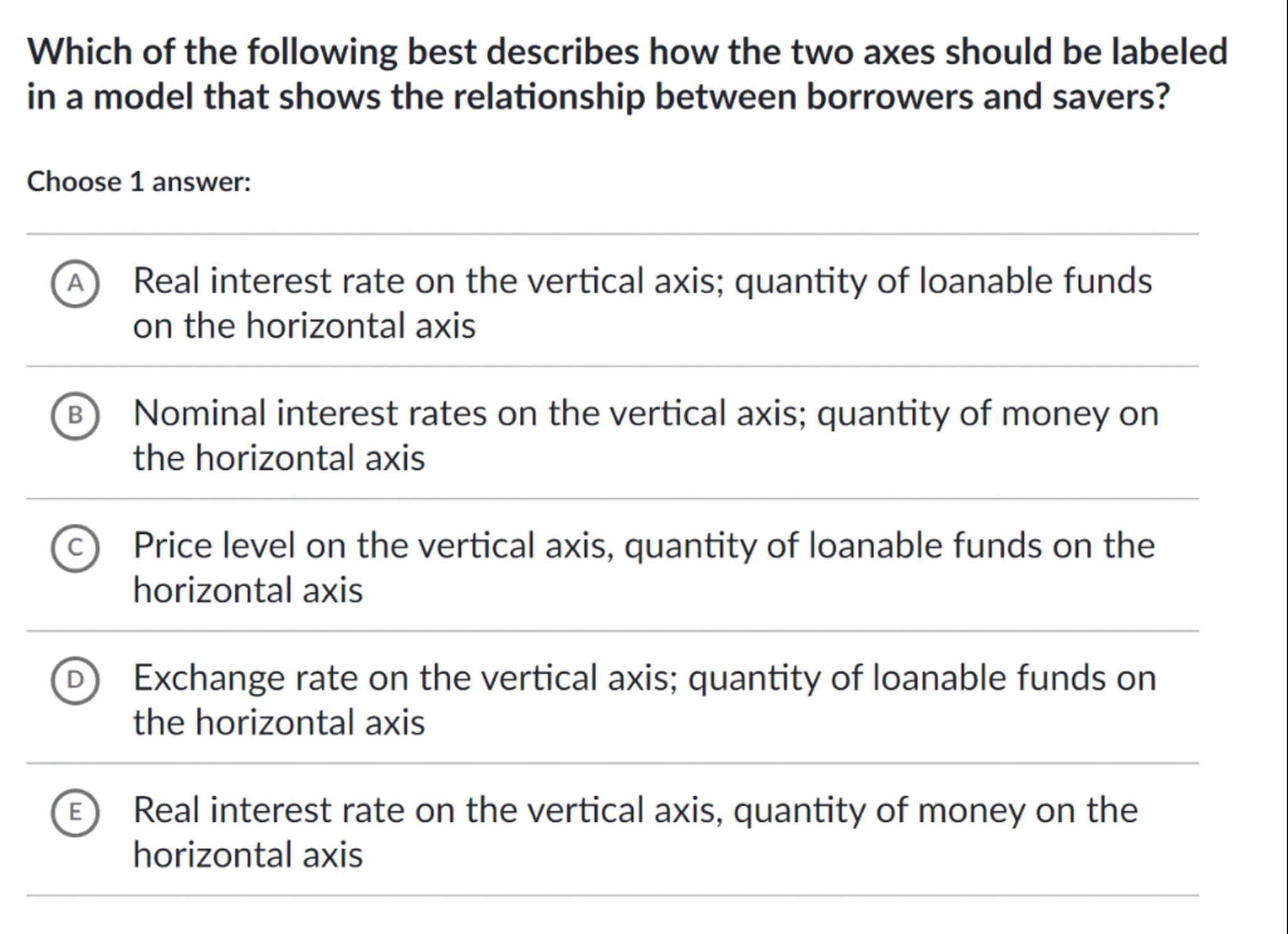(A) Real interest rate on the vertical axis; quantity of loanable funds on the horizontal axis