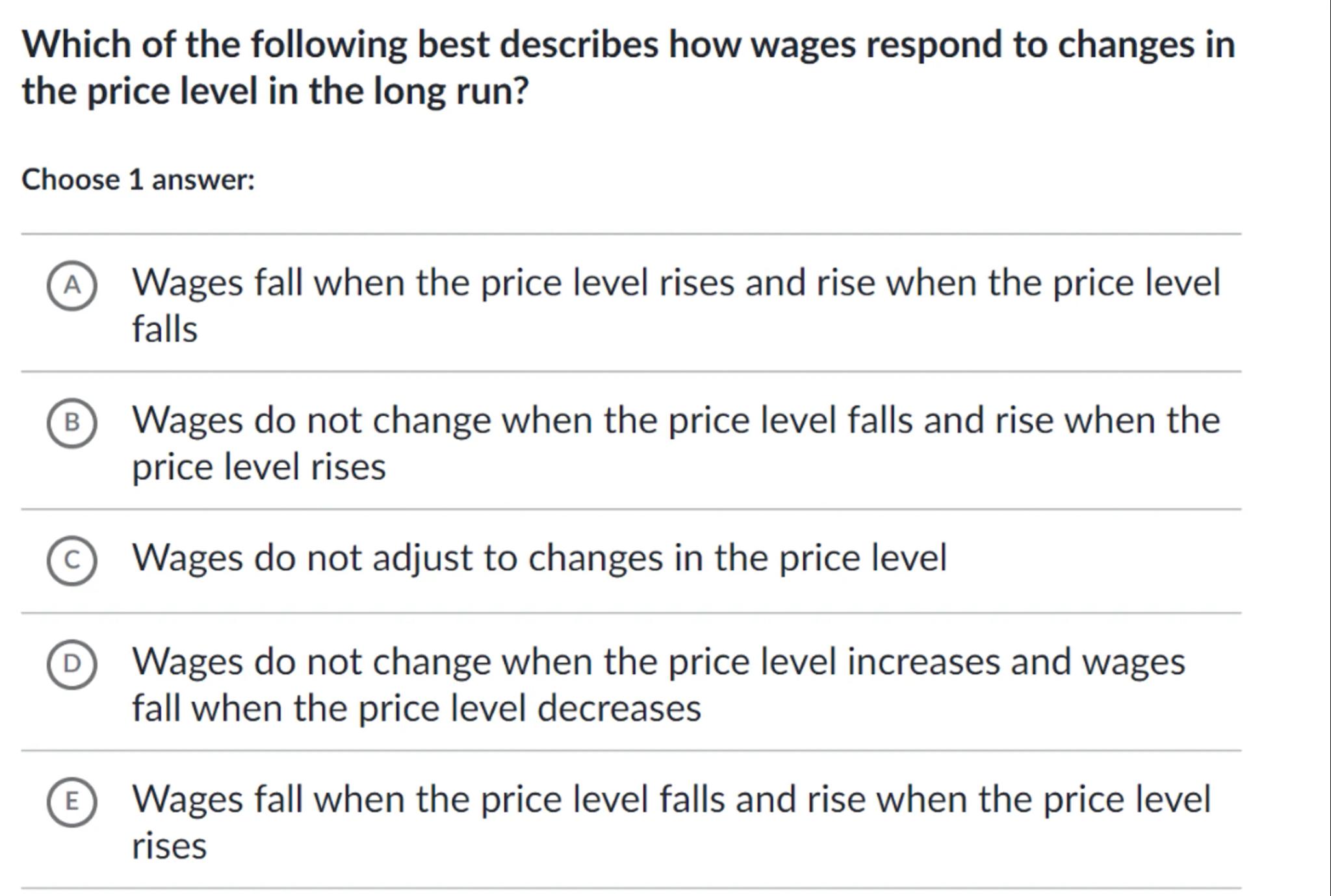 Which of the following best describes how wages respond to changes in the price level in the long run?