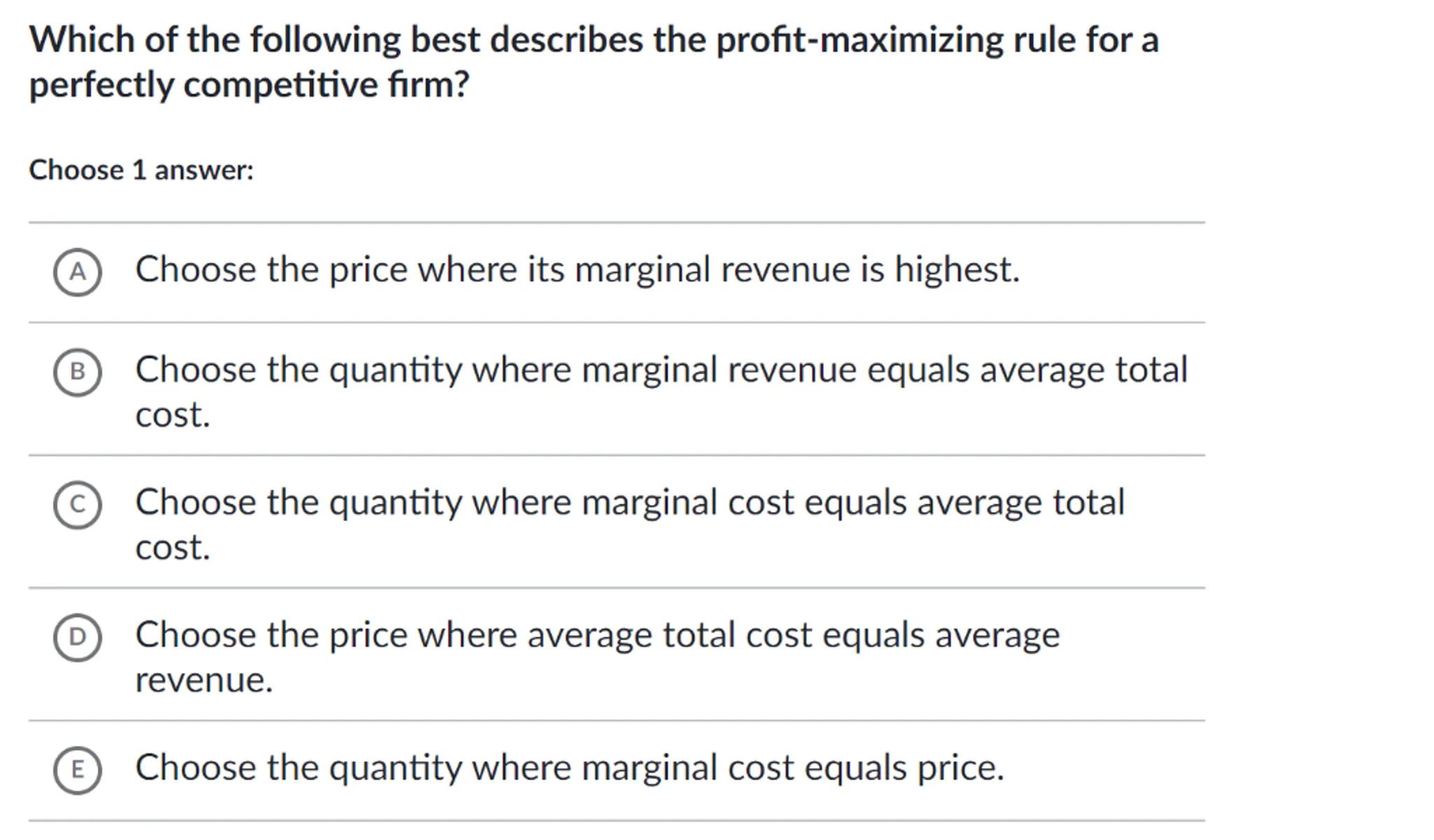 Which of the following best describes the profit-maximizing rule for a perfectly competitive firm?