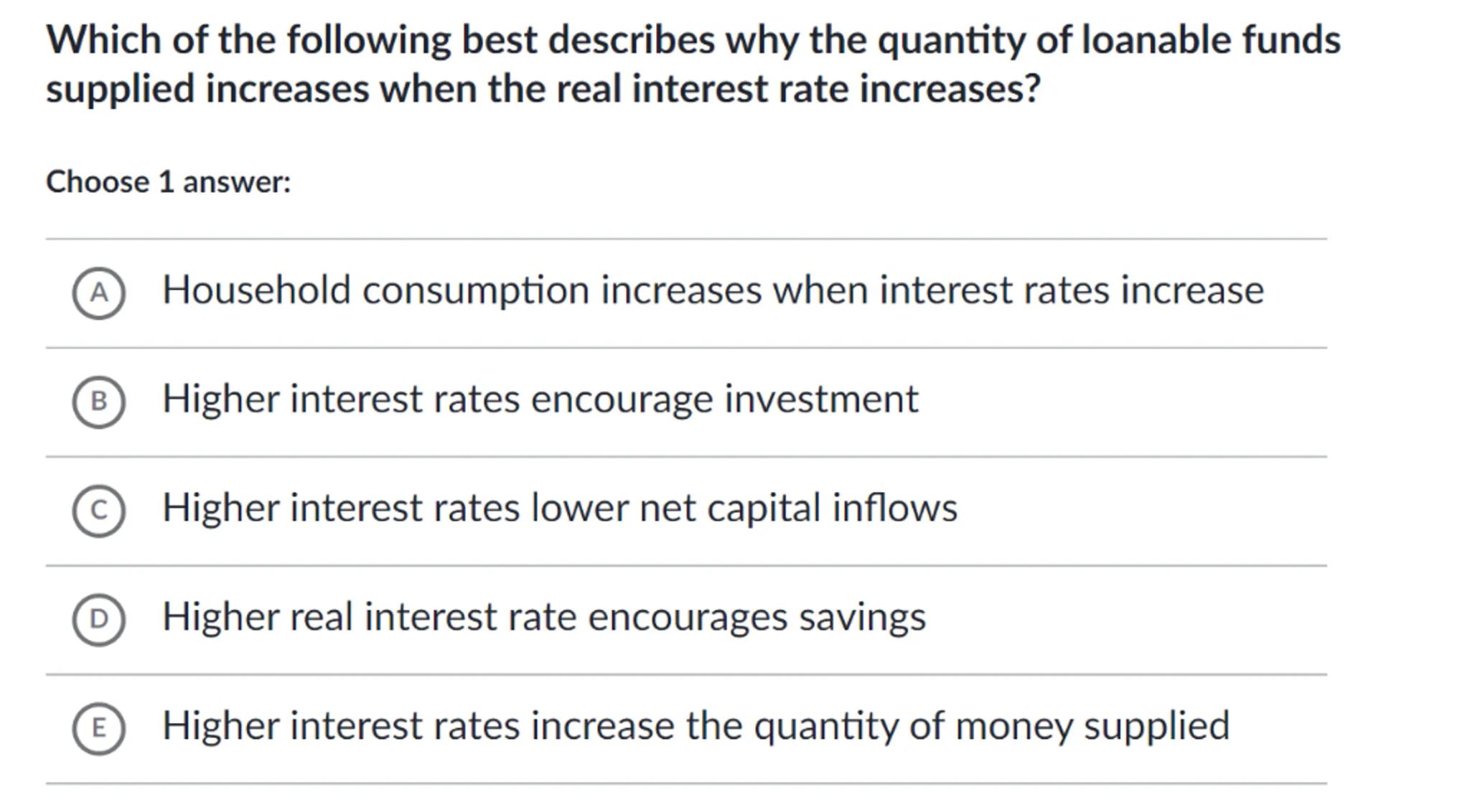 Which of the following best describes why the quantity of loanable funds supplied increases when the real interest rate increases?