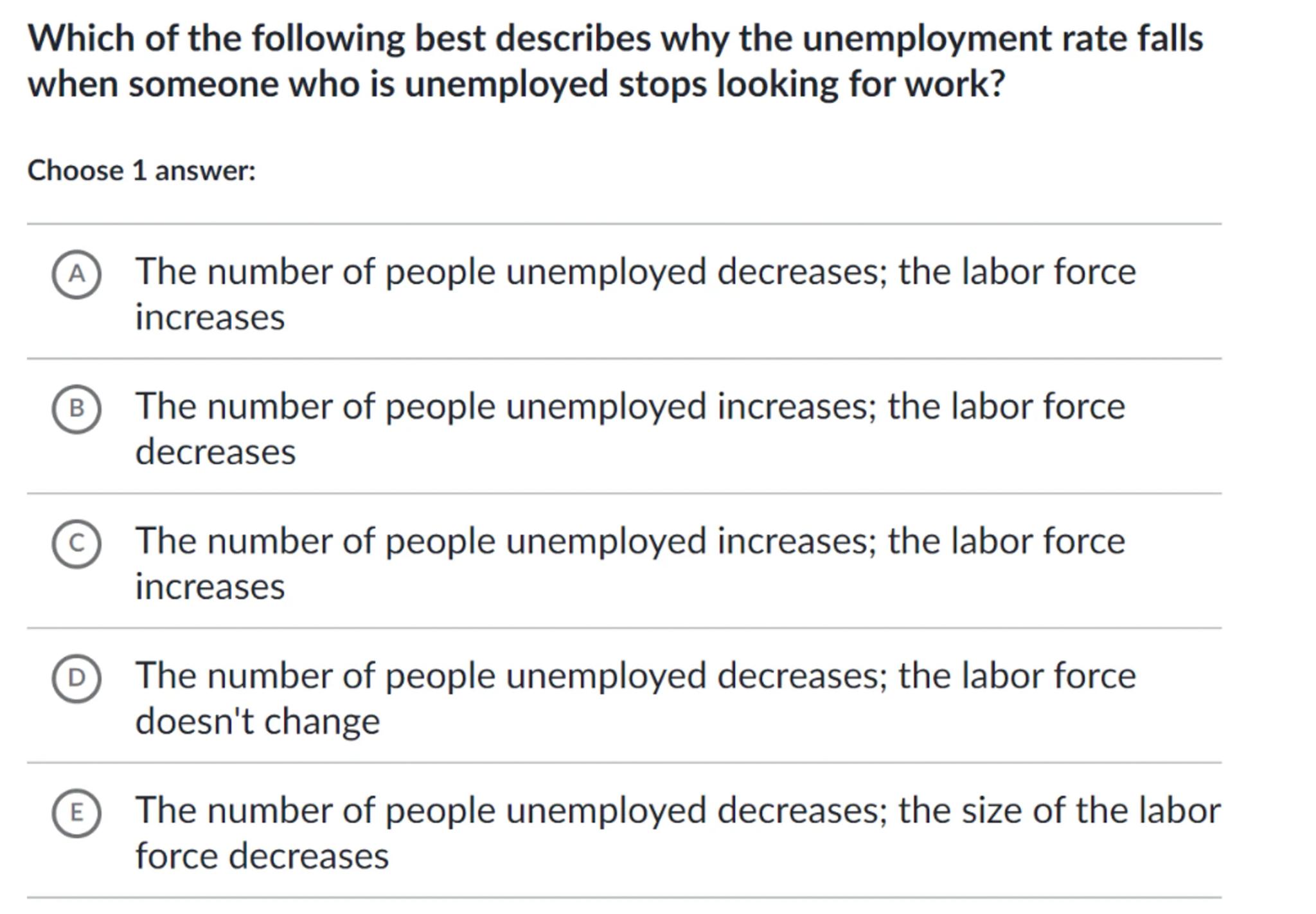 Which of the following best describes why the unemployment rate falls when someone who is unemployed stops looking for work?