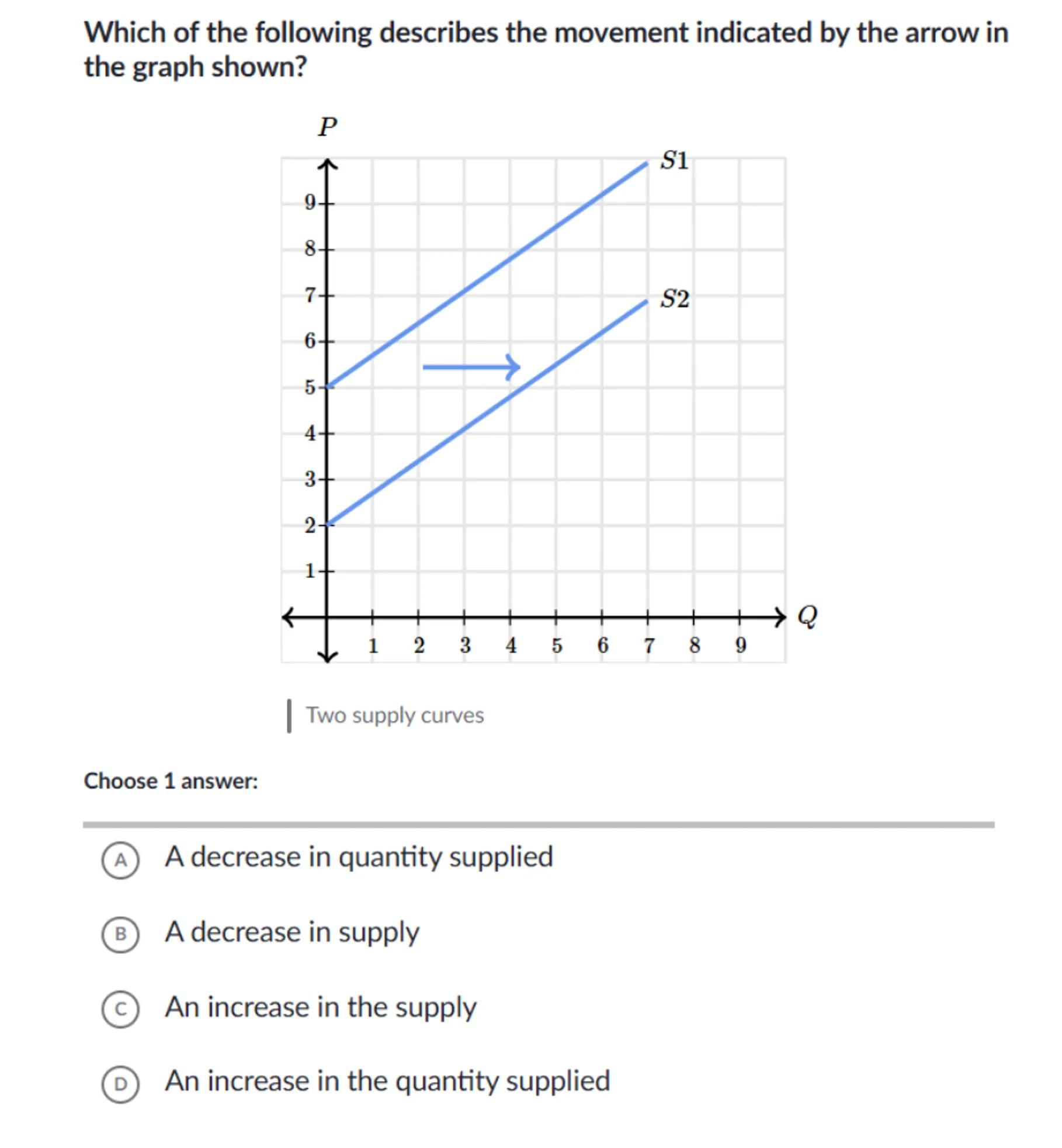 Which of the following describes the movement indicated by the arrow in the graph shown?