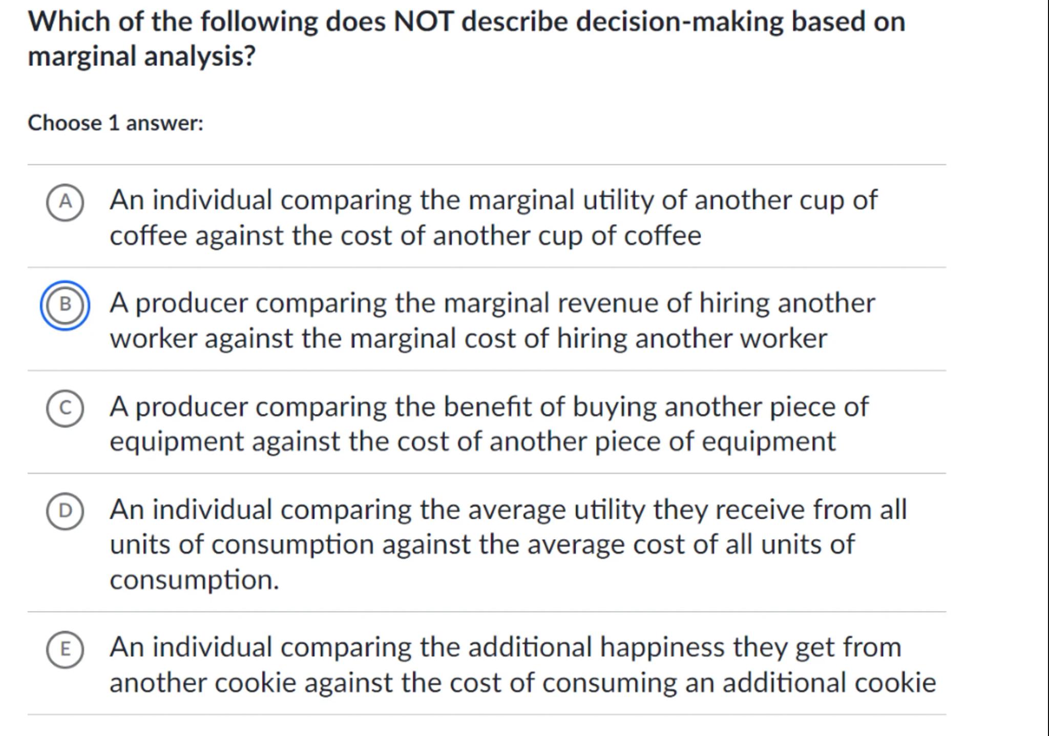 Which of the following does NOT describe decision-making based on marginal analysis?