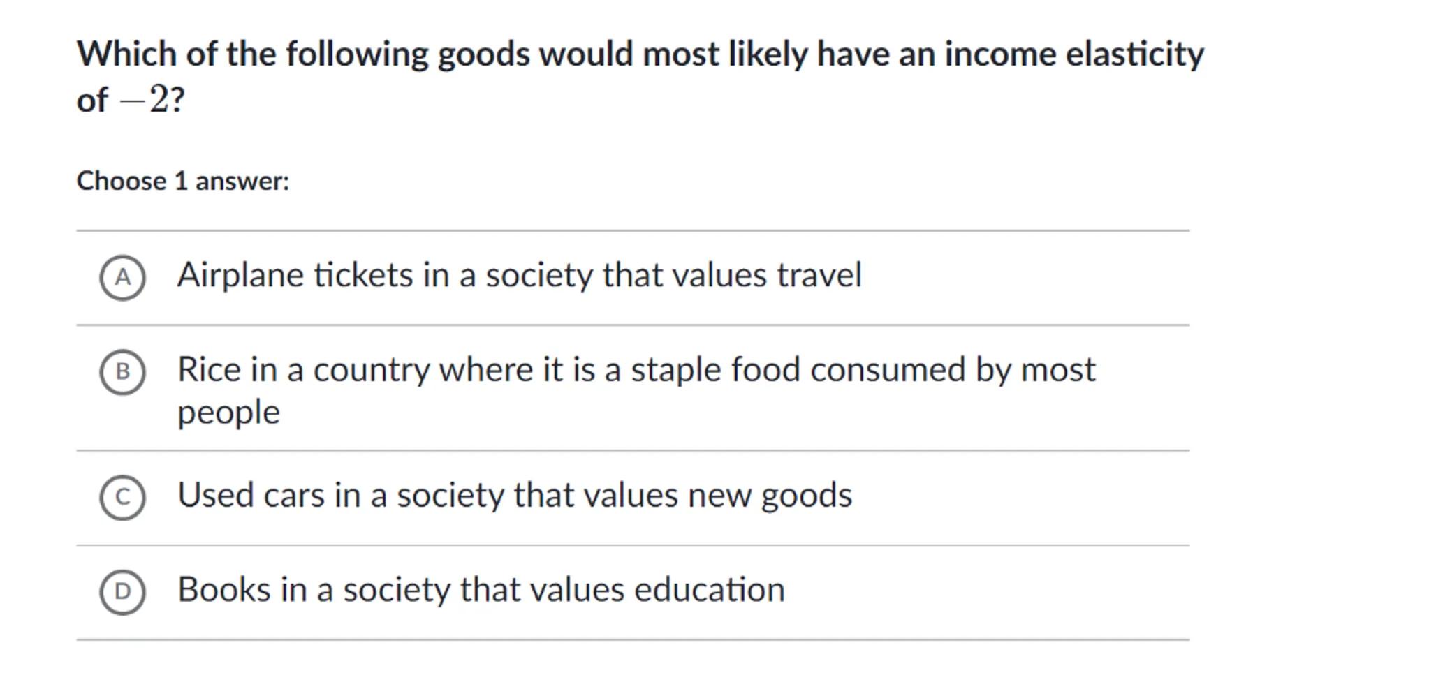 (A) Airplane tickets in a society that values travel