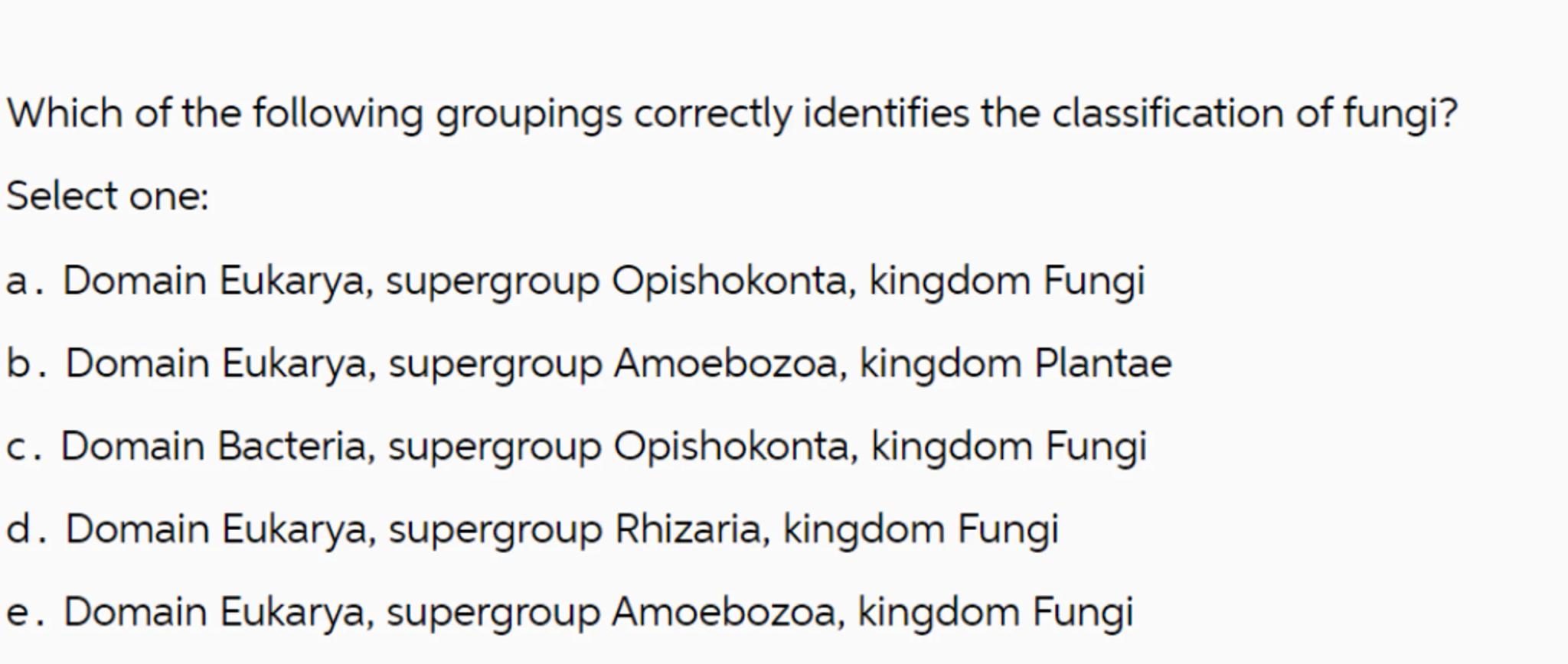 a. Domain Eukarya, supergroup Opishokonta, kingdom Fungi