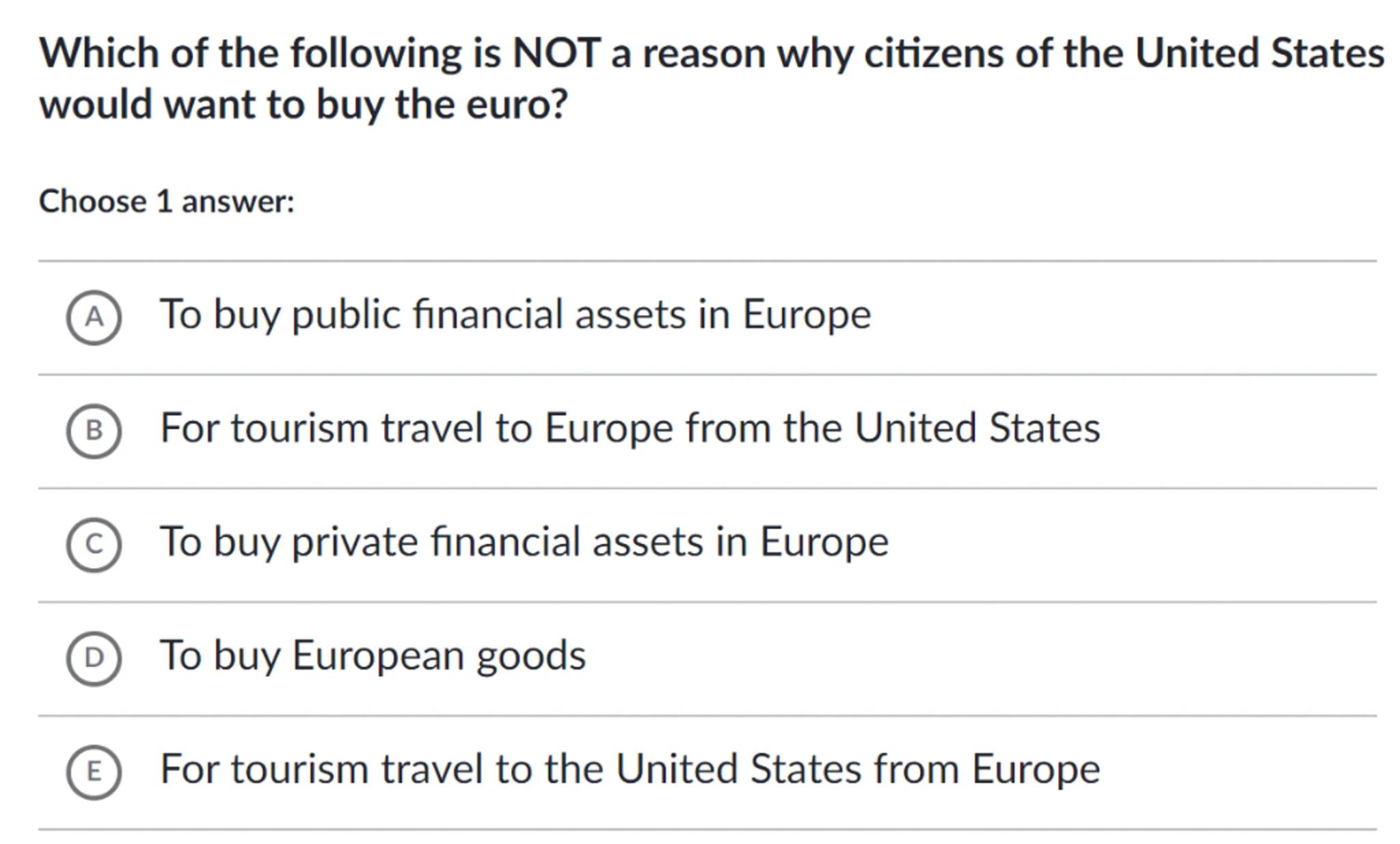 Which of the following is NOT a reason why citizens of the United States would want to buy the euro?