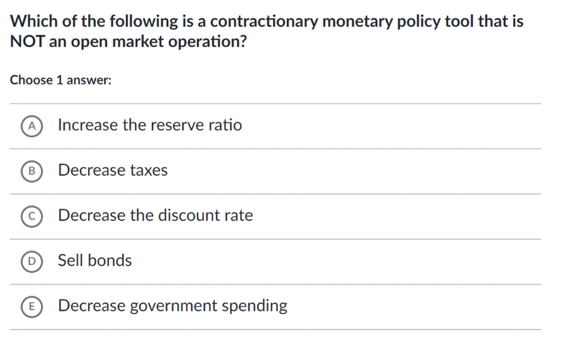 Which of the following is a contractionary monetary policy tool that is NOT an open market operation?