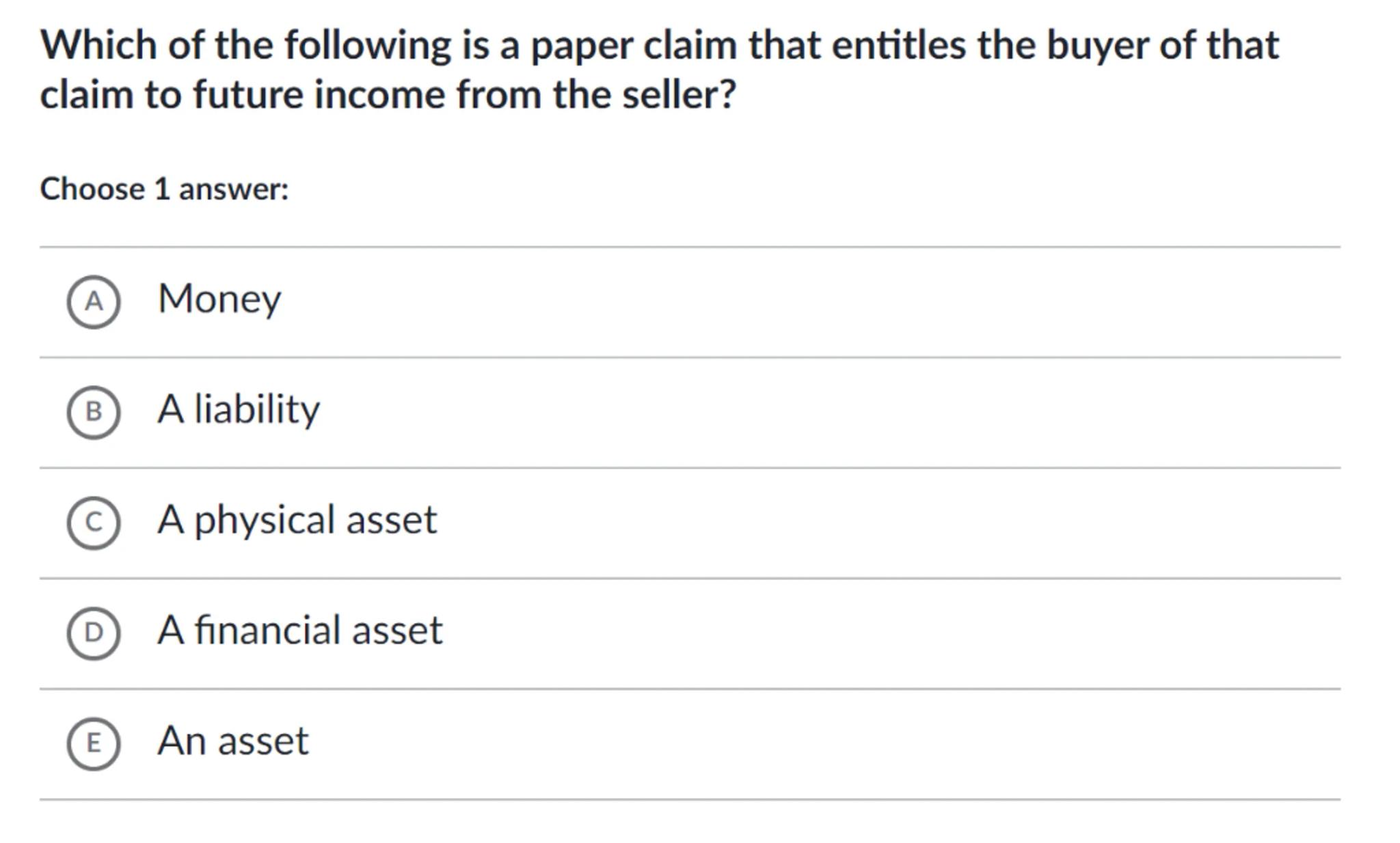 Which of the following is a paper claim that entitles the buyer of that claim to future income from the seller?