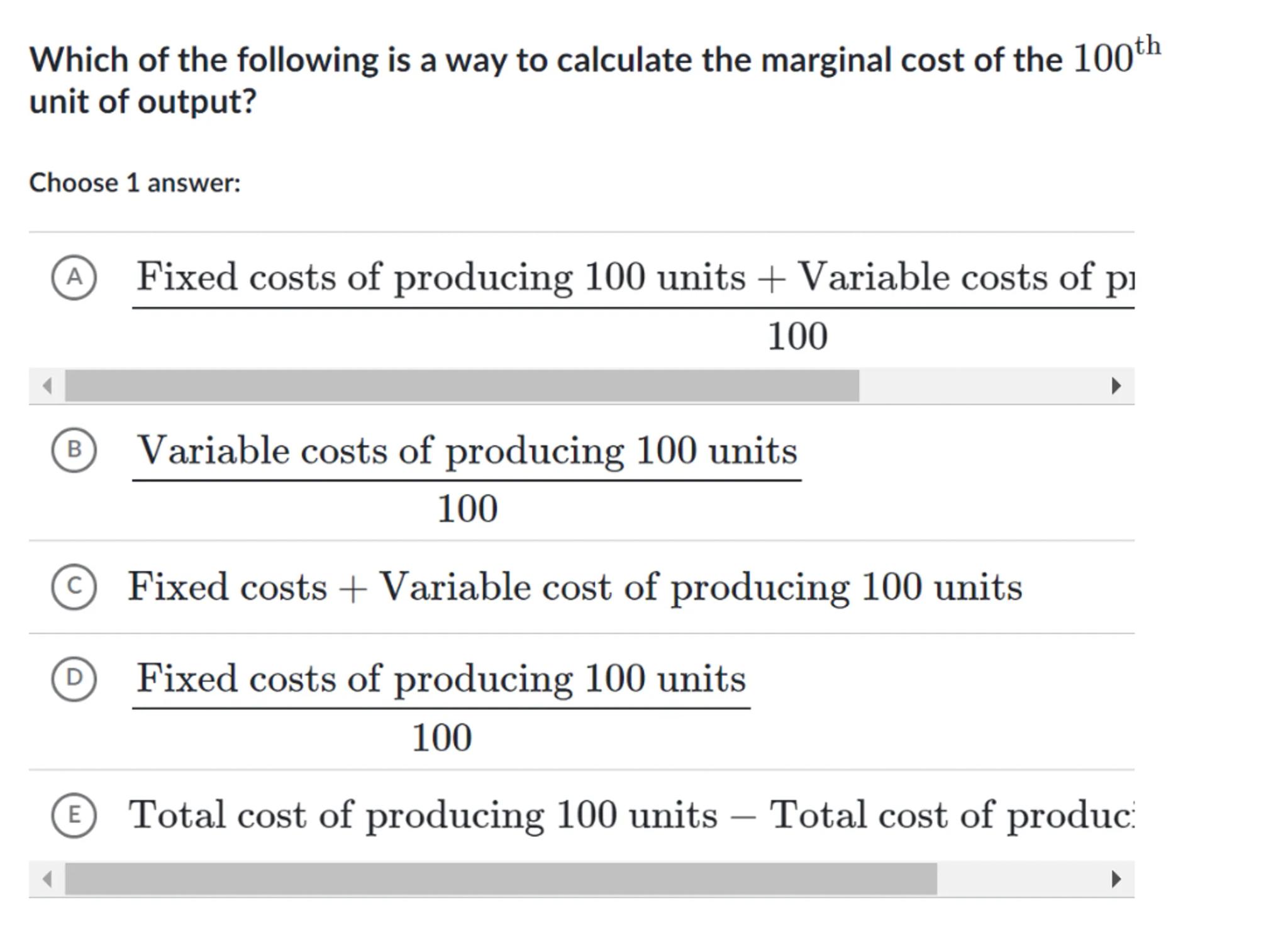 (A) Fixed costs of producing 100 units + Variable costs of p]
