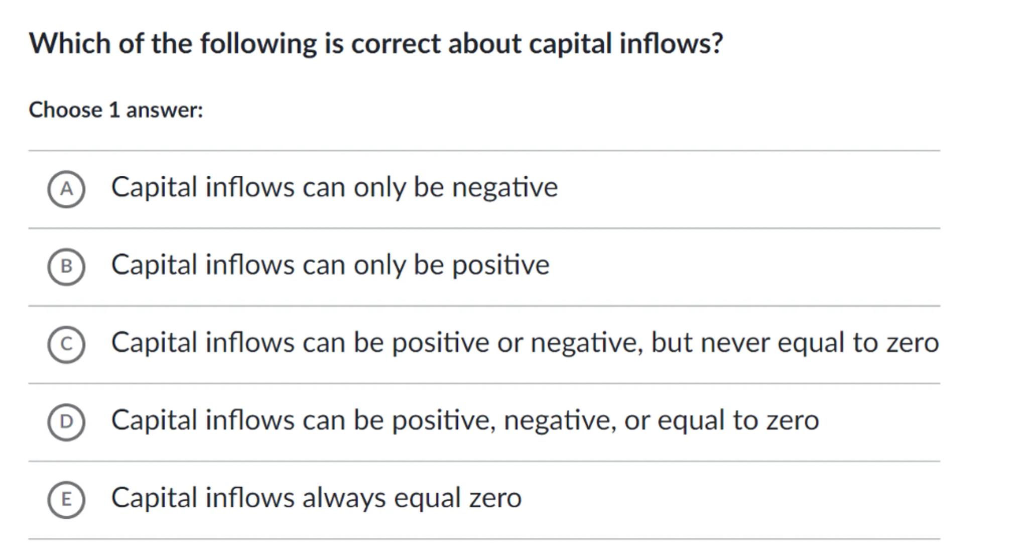 (C) Capital inflows can be positive or negative, but never equal to zero